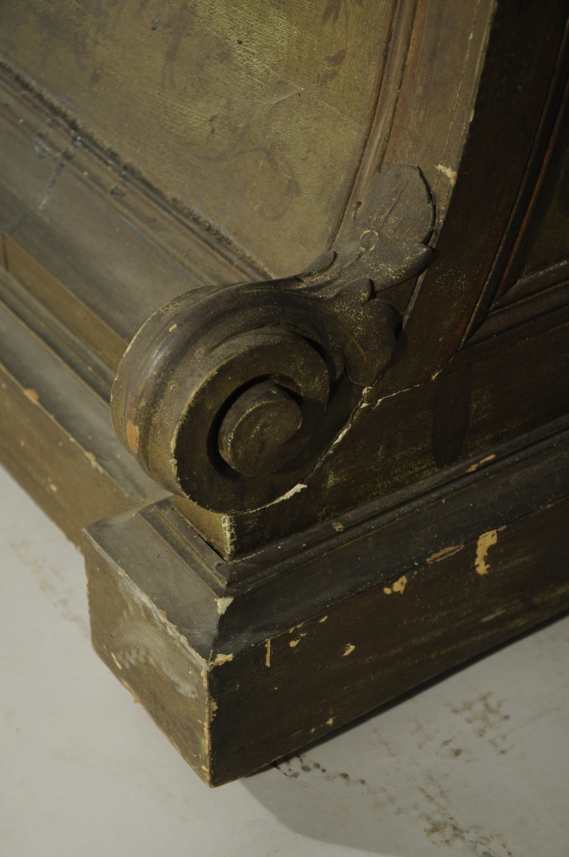 Bois peints de fleurettes et garnis de velours rouge aux extrémités.