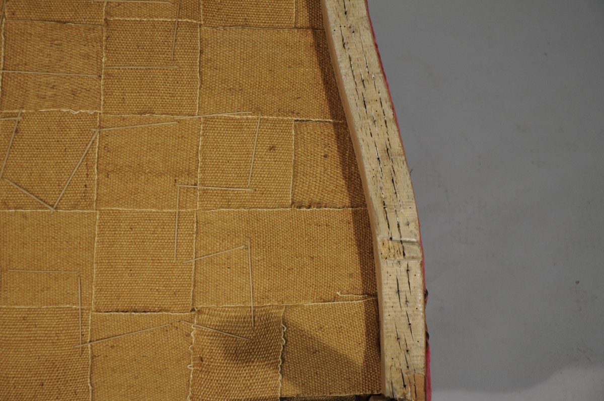 Garniture de velours rouge à motifs floraux.