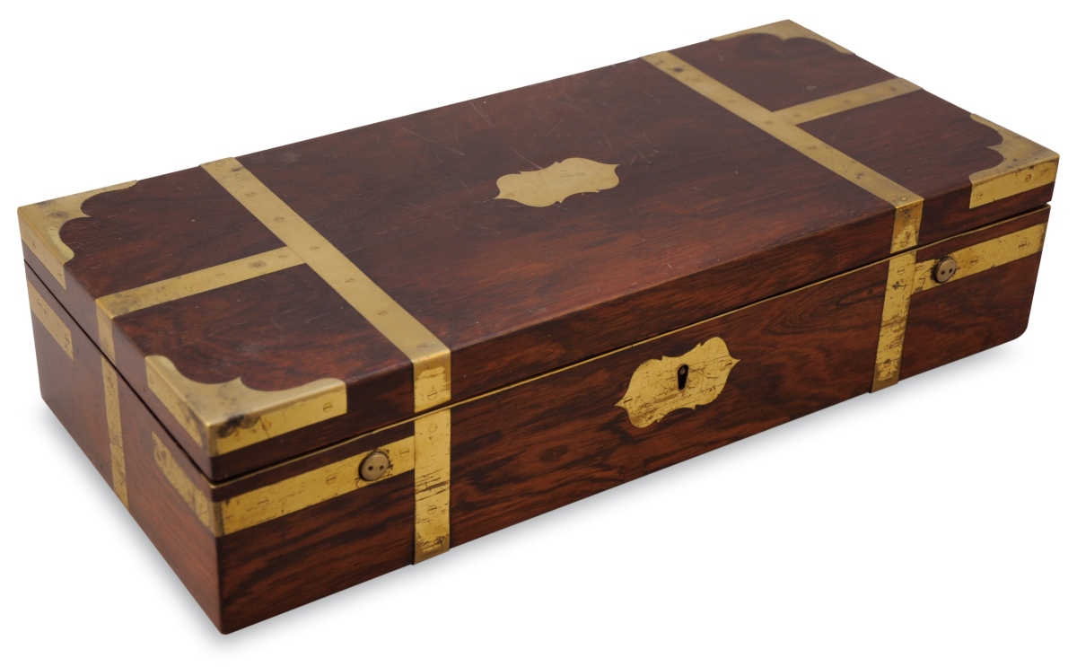 Dimensions du coffret : Haut. 9, Larg. 39, Prof. 17,5 cm. (manques).