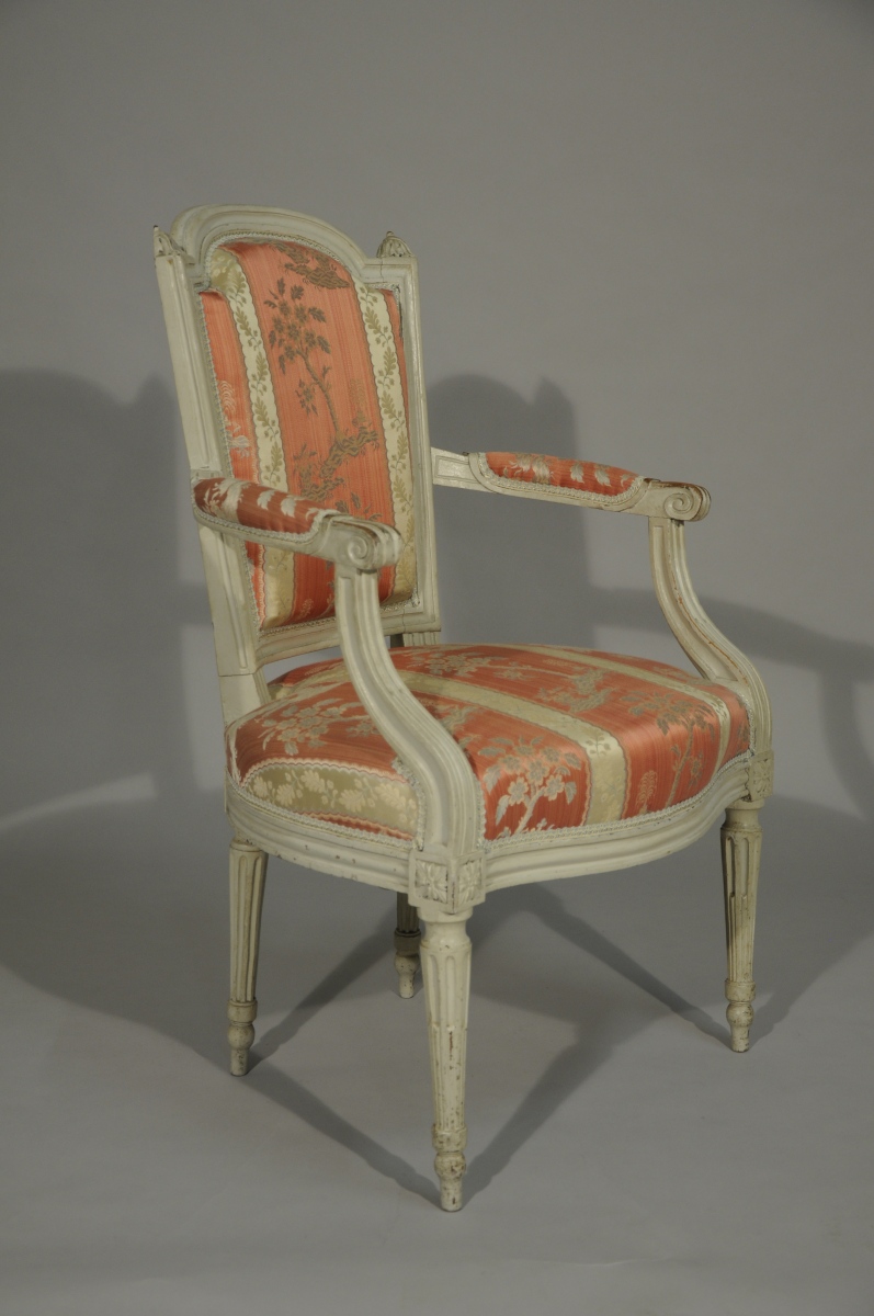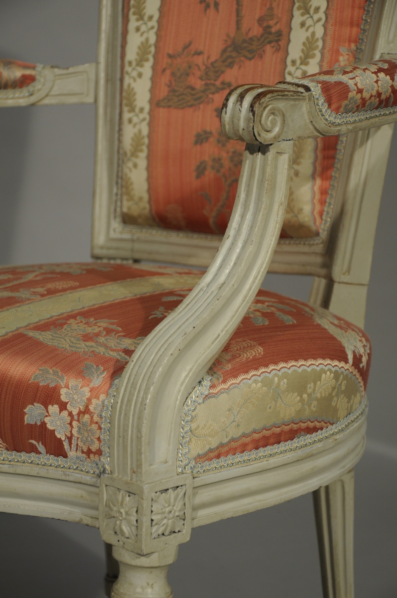 Fauteuils : Haut. 89, Larg. 58, Prof. 54 cm (trois des fauteuils de proportions très légèrement différentes).