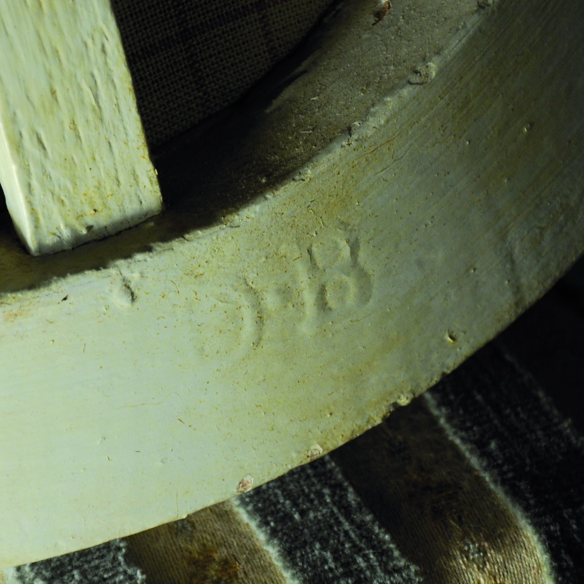 Deux d'entre eux portent sur la traverse inférieure du dossier, au revers, une marque en relief : " D.B. "
