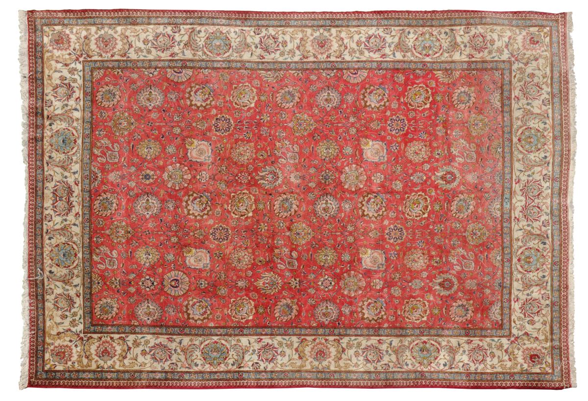 TAPIS d'ORIENT - ISPAHAN, Iran en laine à points noués, à dominante rouge.