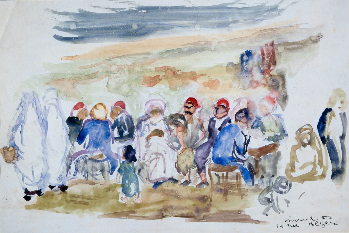 " La Rue " [à Alger].Aquarelle signée et datée en...