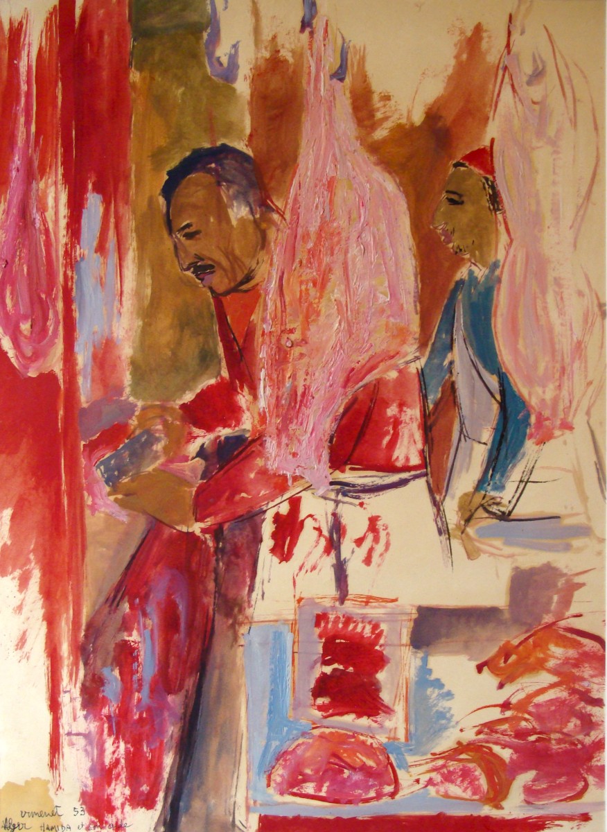 " Hamida et son aide " [le boucher].Huile sur papier...