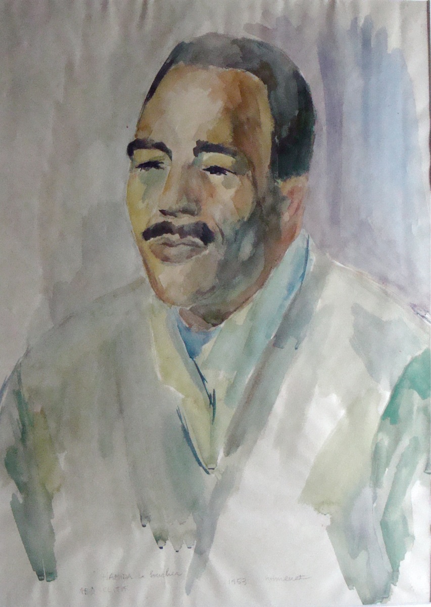 Aquarelle signée et datée en bas au crayon : " Hamida le boucher Abd el-Tif 1953 Vimenet ".