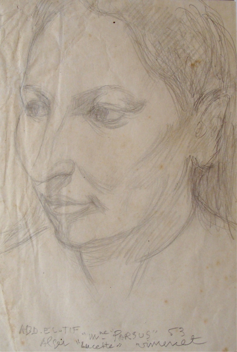 Dessin au crayon située, titré, signé et daté en bas au centre au crayon : " Abd el-Tif, Alger Mme Parsus Lucette 53 Vimenet ".