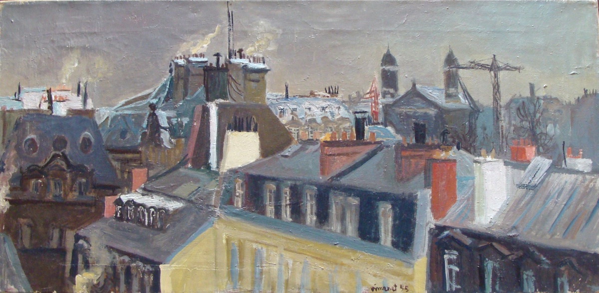 Sans titre [toits de Paris].Huile sur toile signée et datée...