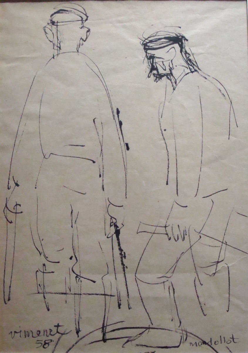 Dessin à l'encre. En bas à droite à l'encre : " Vimenet 56 Mondollot ".