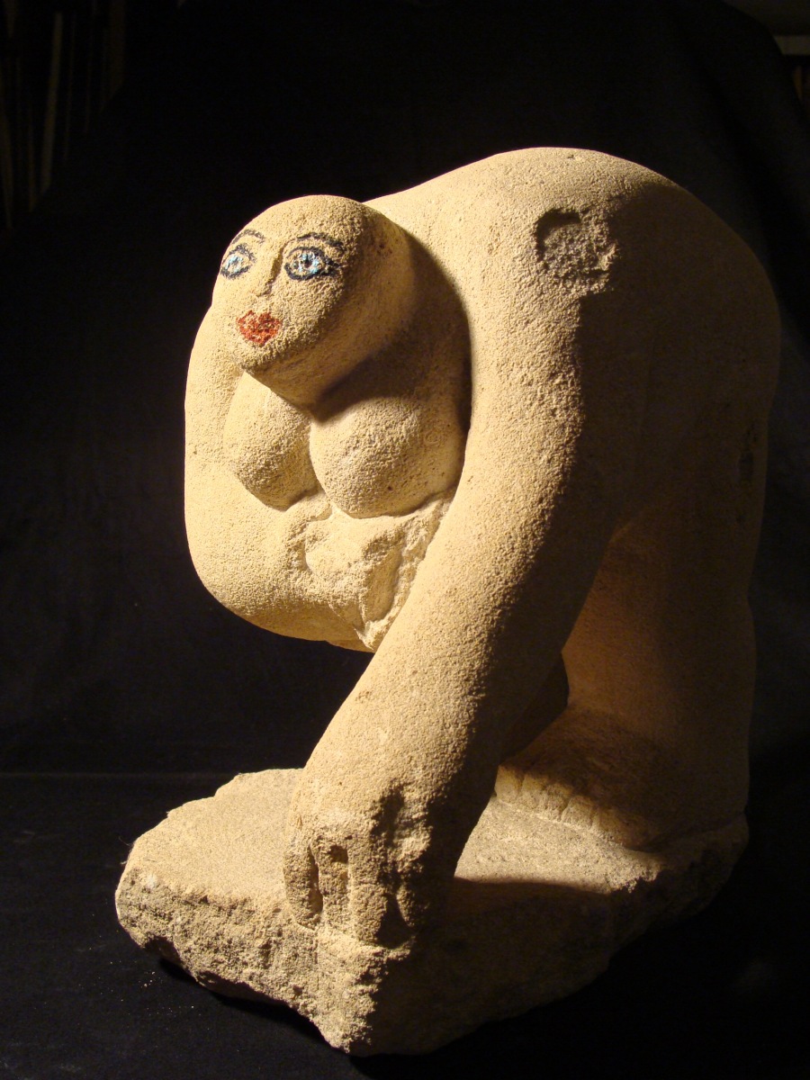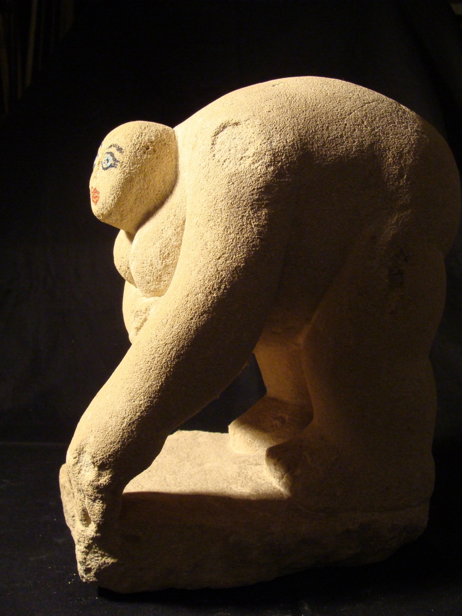 " La Petite Baigneuse ".Taille directe sur pierre calcaire ocrée,...