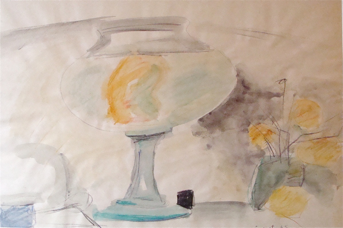 " Poisson ". Fusain, crayons-aquarelle signé et daté en bas...