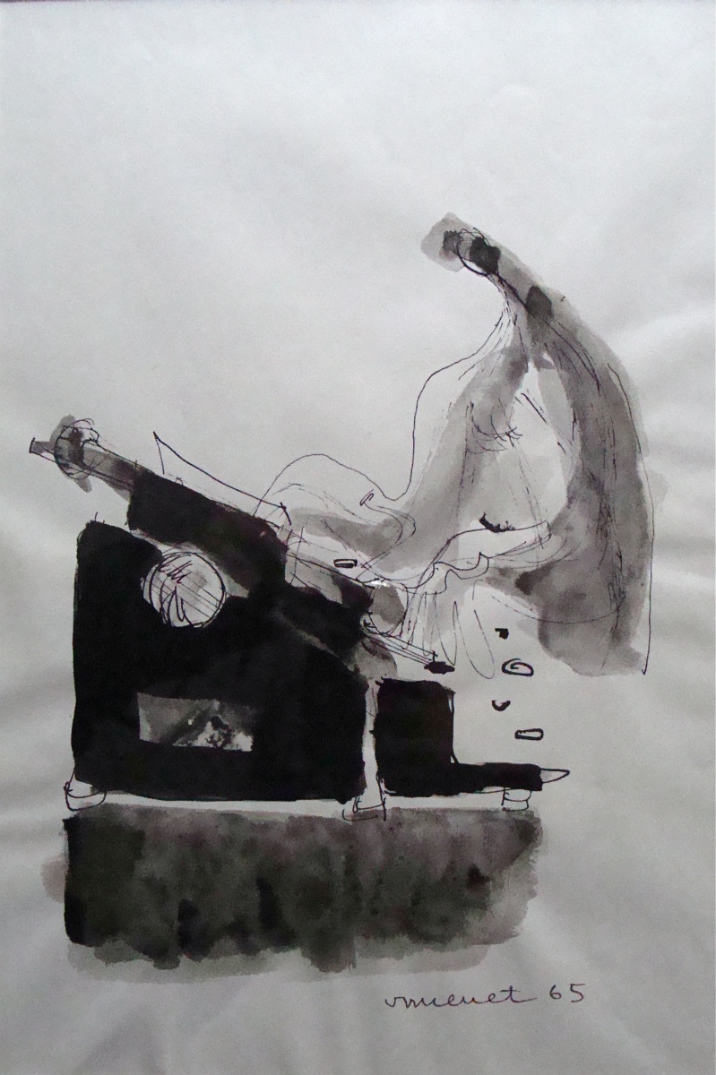 Dessin à la plume à l'encre et lavis signée et datée en bas à droite à l'encre : " Vimenet 65 ".