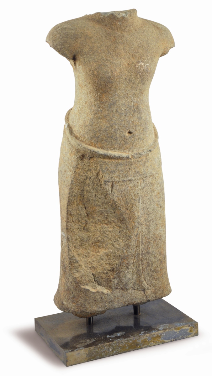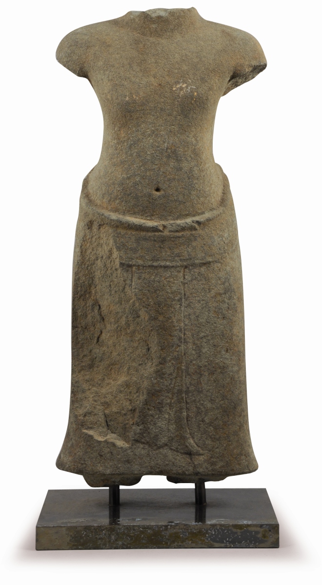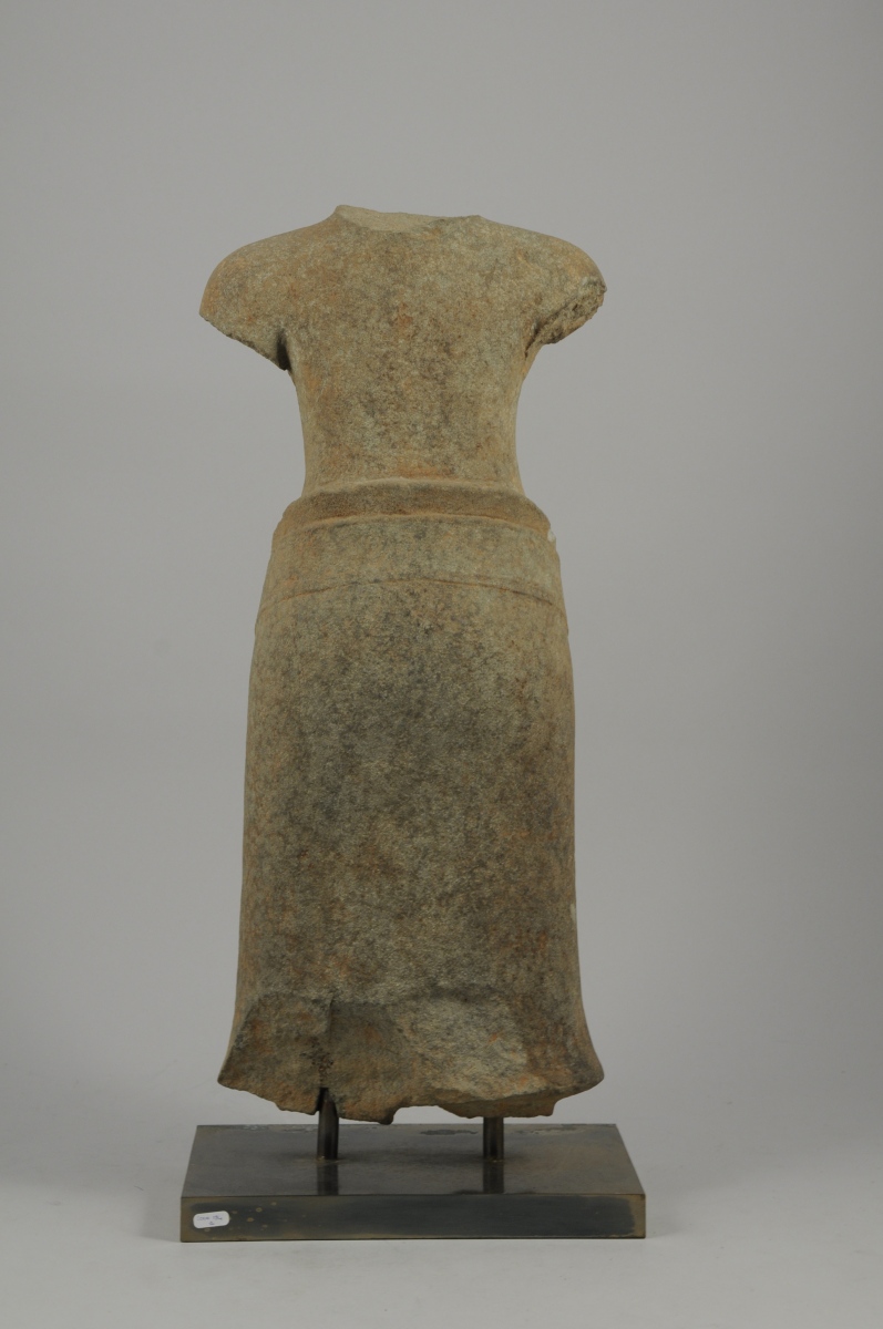 TORSE DE DIVINITÉ en grès sculpté. Art khmer du XIIIe...