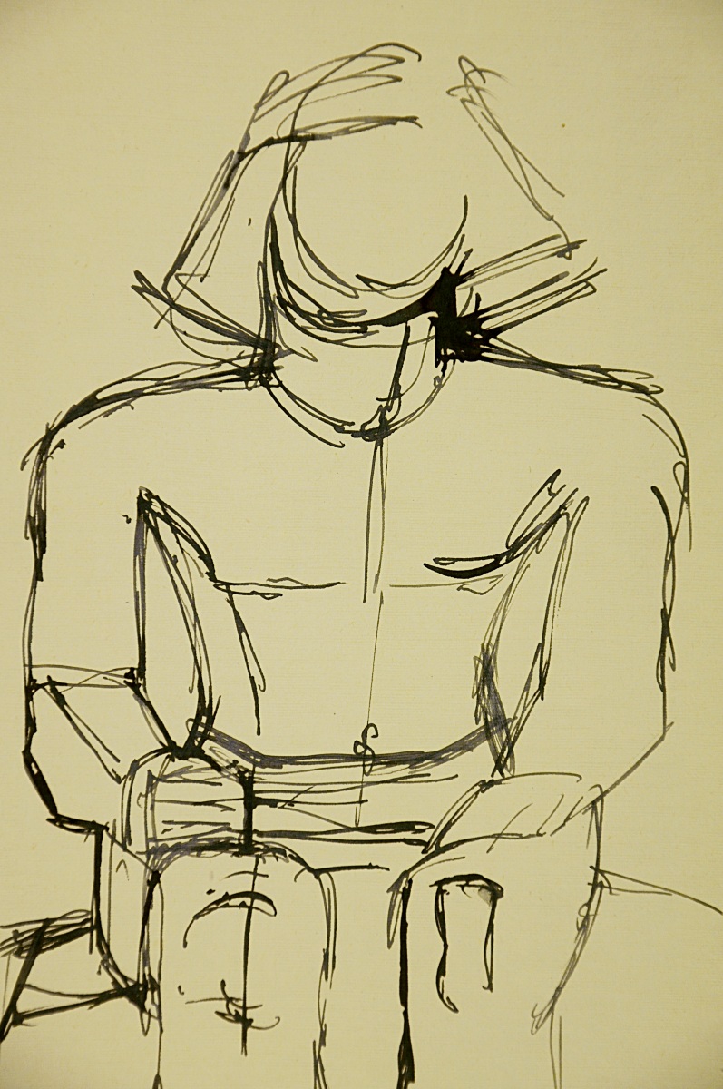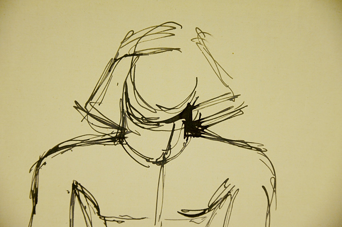 Dessin à la plume et à l'encre noire sur papier à lettres.