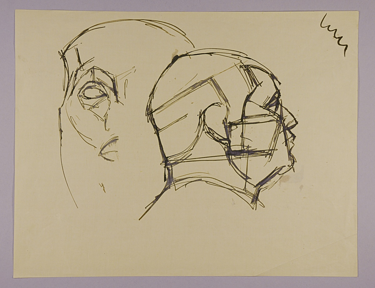 [D'après une sculpture égyptienne : Tête de face et de profil], vers 1937.
