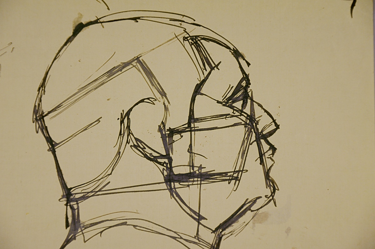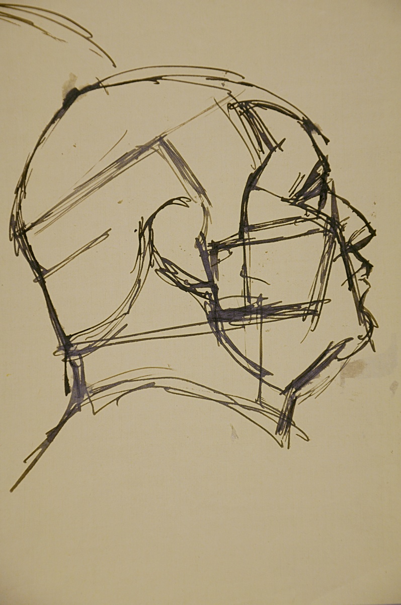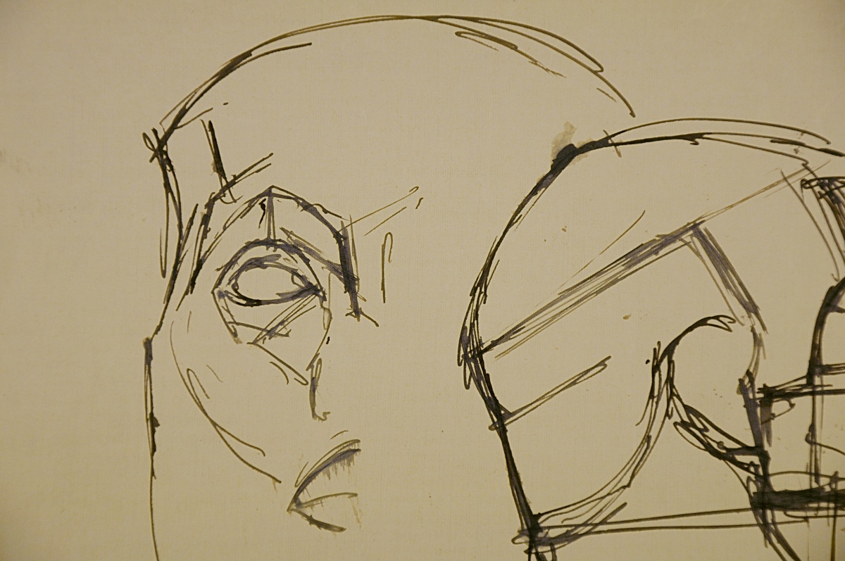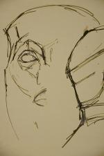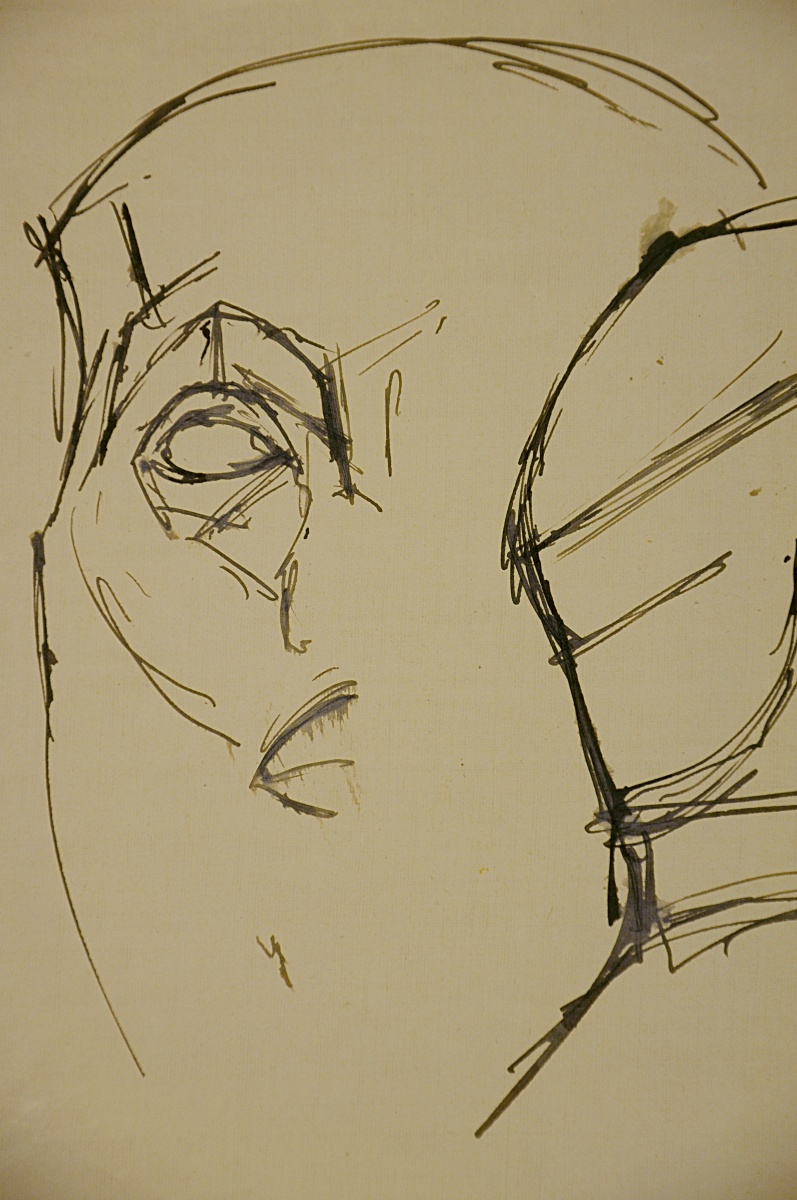Dessin à la plume et à l'encre noire sur papier à lettres.