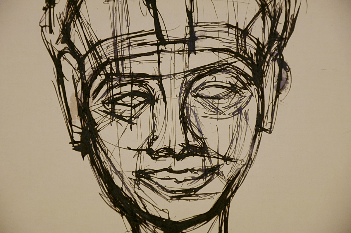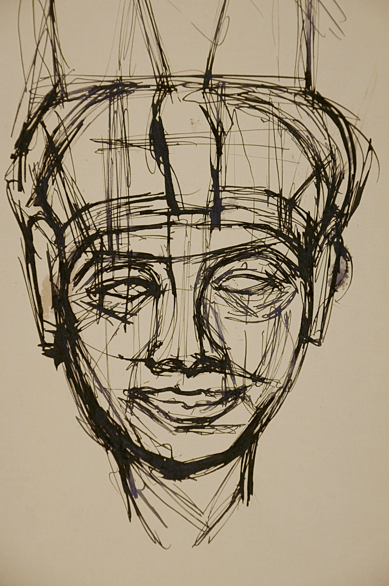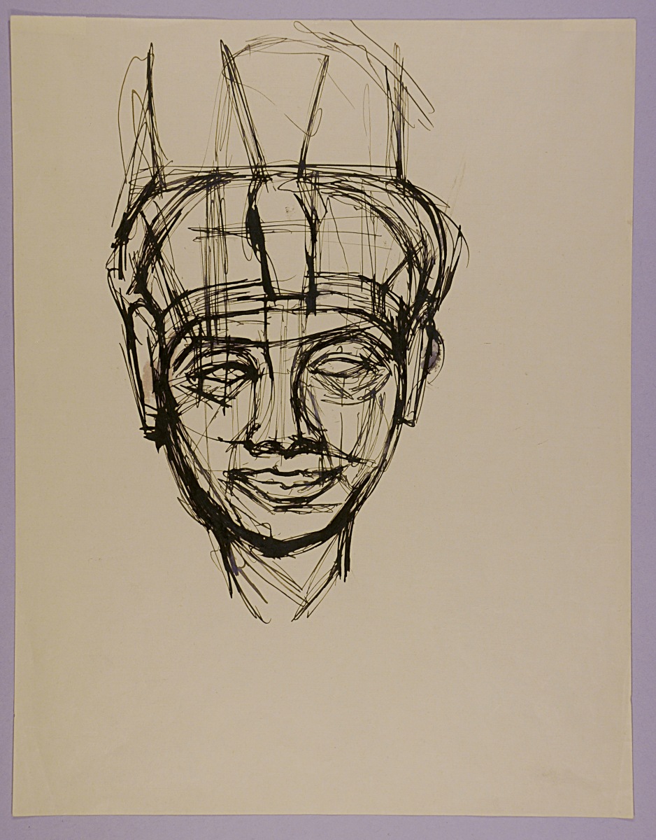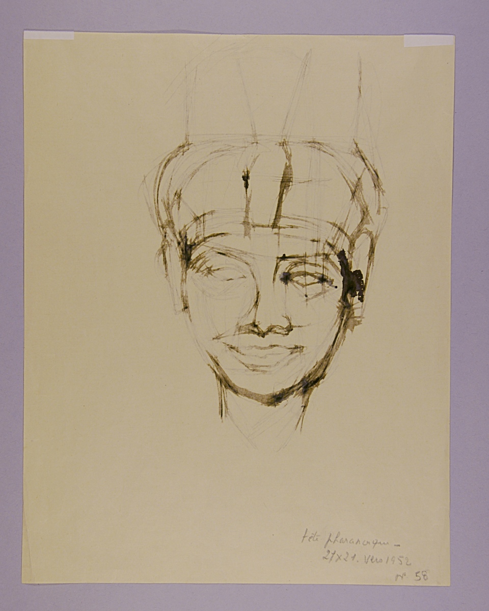 Mentions manuscrites au crayon au dos en bas : "tête pharaonique - / 27 x 21. vers 1952 / N°58".