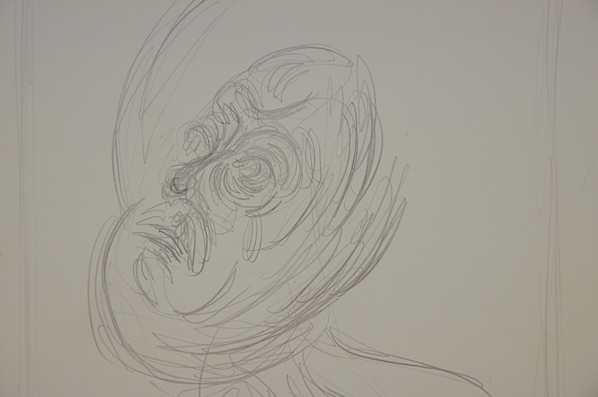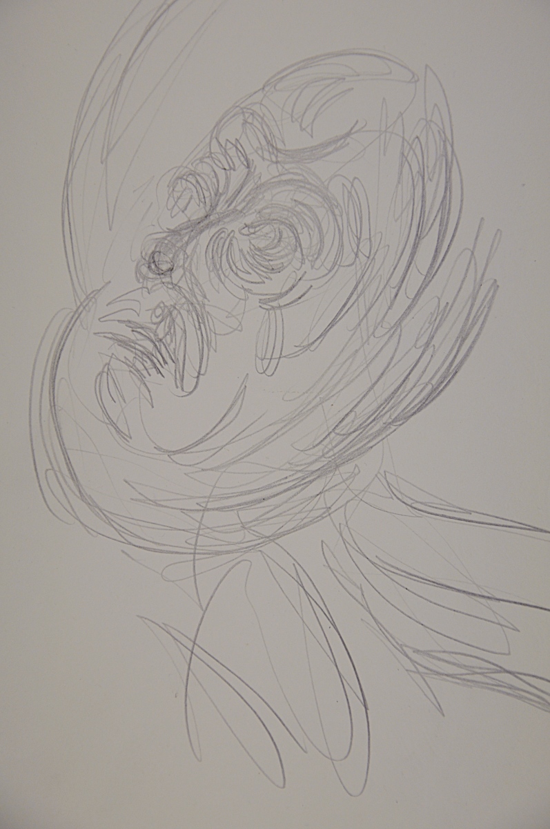 Dessin au crayon et au crayon de couleur sur papier.