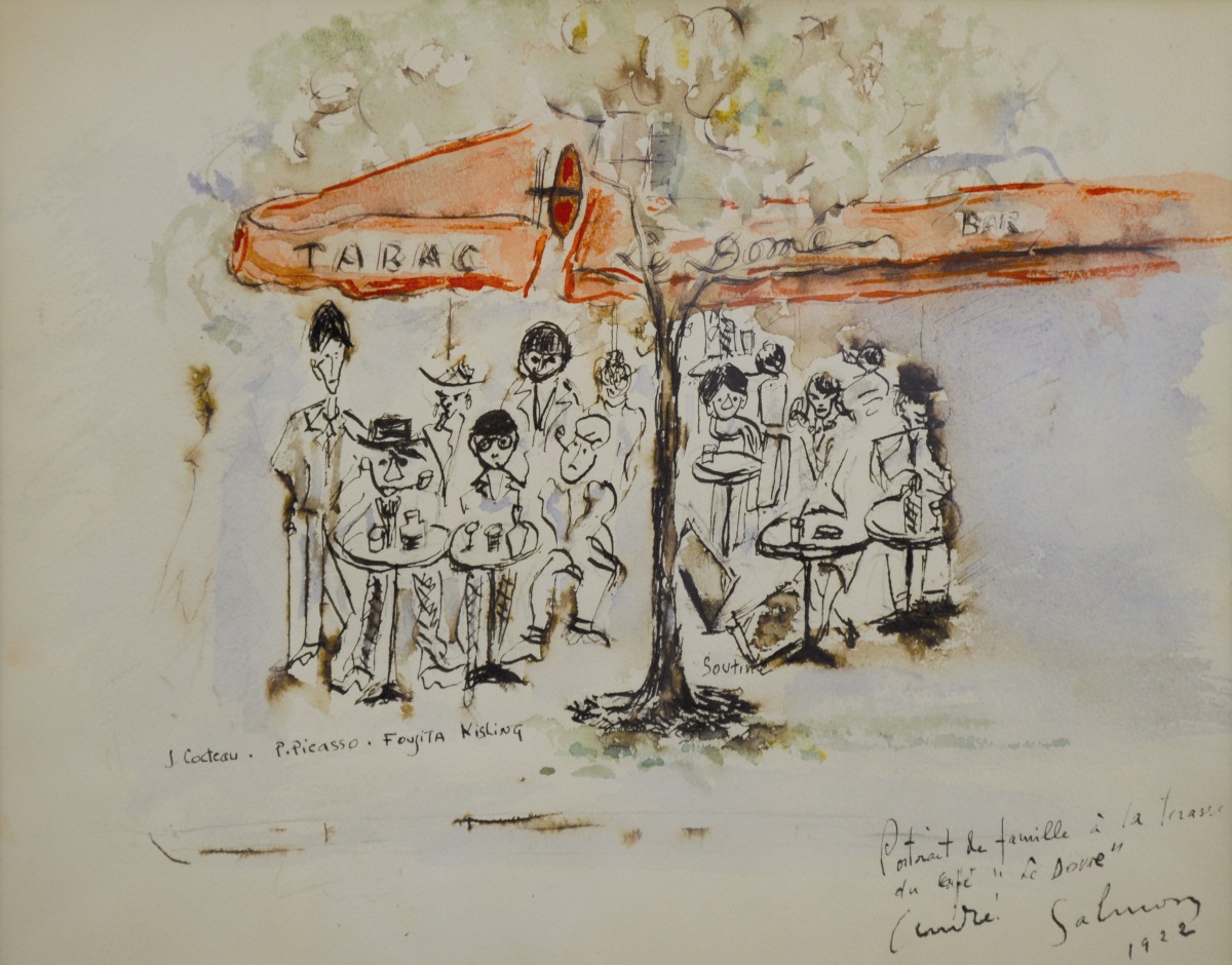 "Portrait de famille à la terrasse du café "Le Dôme" : Cocteau, Picasso, Foujita, Kisling, Soutine.