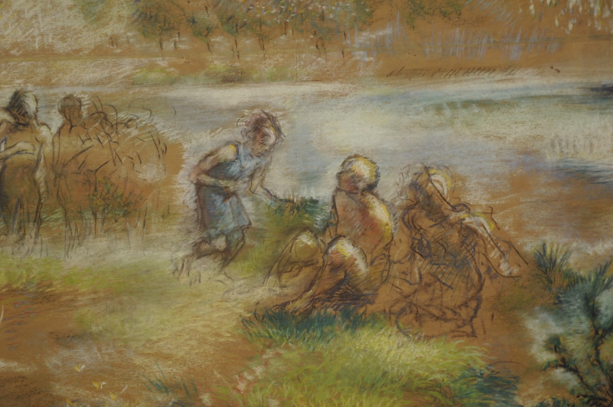 Originaire de Valenciennes, Henri Dimier vit à Paris, dès 1902, et y pratique l'École des Beaux-Arts en 1919, après avoir servi comme chasseur alpin pendant la Première Guerre mondiale. Il entretient alors des amitiés artistiques dans le creuset des ballets russes avec Diaguilev, Lifar ou encore Cocteau. Dimier fréquente également le cercle de Marie-Laure de Noailles jusqu'en 1935, année où "s'achève son étourdissement mondain". Il se consacre alors exclusivement à son oeuvre. Des coups de cur marquent son itinéraire entre innovations et tendance au retour à l'ordre : Giorgio Di Chirico, Modigliani, Soutine et Picabia. Engagé, dès juin 1940, dans les Forces Françaises Libres, son amitié après-guerre avec Le Mime Marceau est déterminante dans son approche de la Fantaisie, du Hasard et de la Liberté. Notre esquisse au pastel a été présentée lors d'une exposition particulière en 1967 à la galerie Jacques Desbriere. En 1984, Henri Dimier est le sujet d'un film de Patrick Bokanowski, "La part du hasard", 1er prix du Festival International du film d'art de Montréal, en 1986, année de la mort de l'artiste.