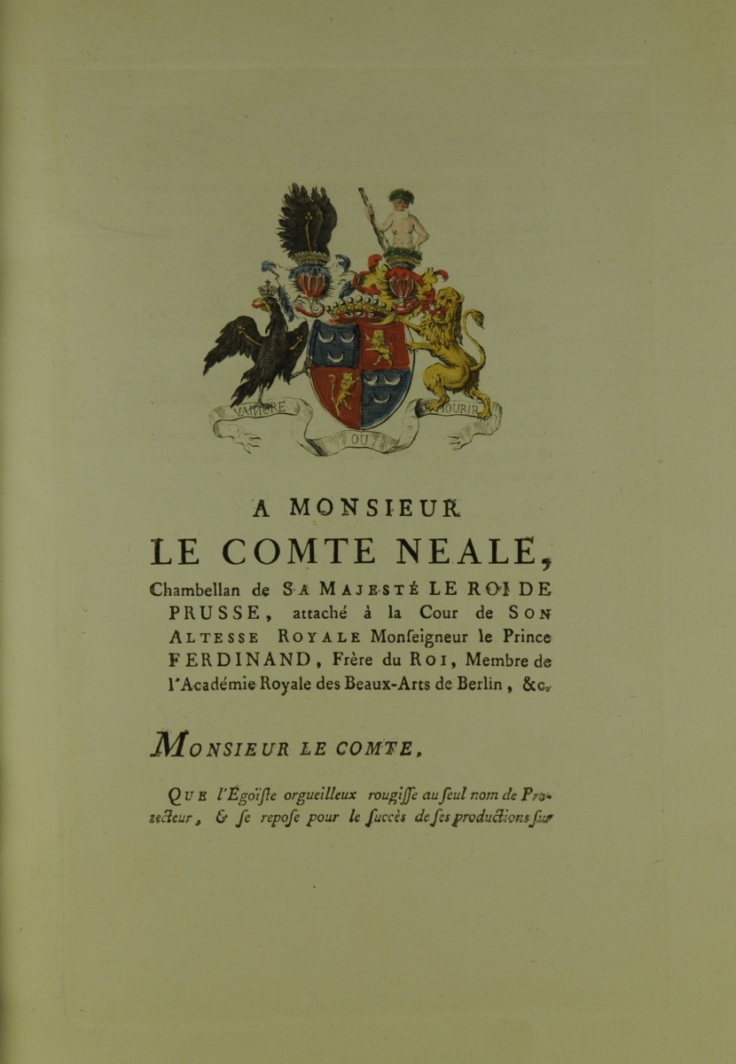 Cinq volumes in-4. (26,5 x 20 cm.). Frontispice en bistre à la date de 1785, répété dans chaque volume, et 361 planches dont 183 en bistre.