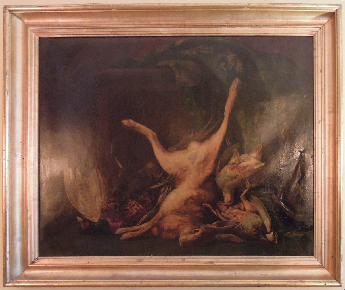 École FRANÇAISE ancienne. Nature morte au lièvre. Toile.
