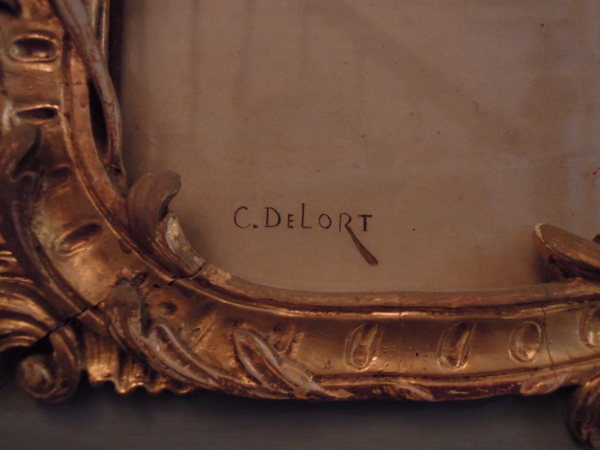 Charles Edouard DELORT (1841-1895). Scène militaire galante. Aquarelle signée.