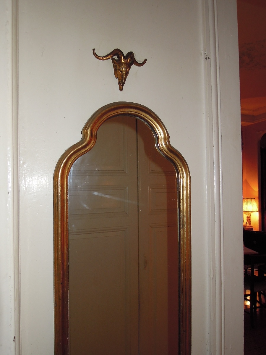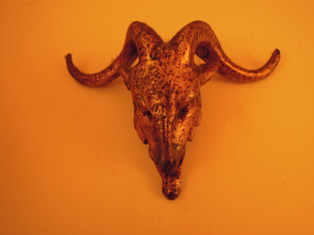 TÊTE DE BÉLIER. Sujet en bronze doré.