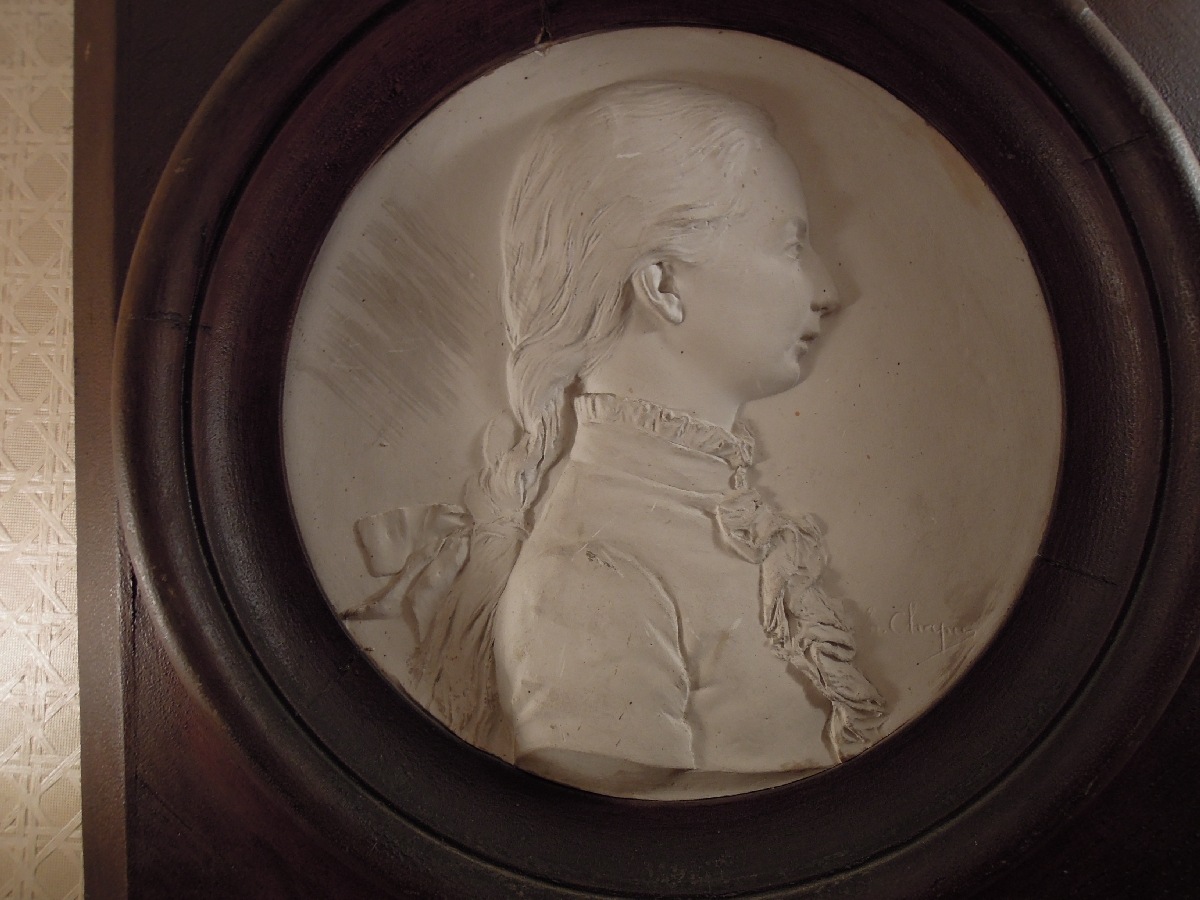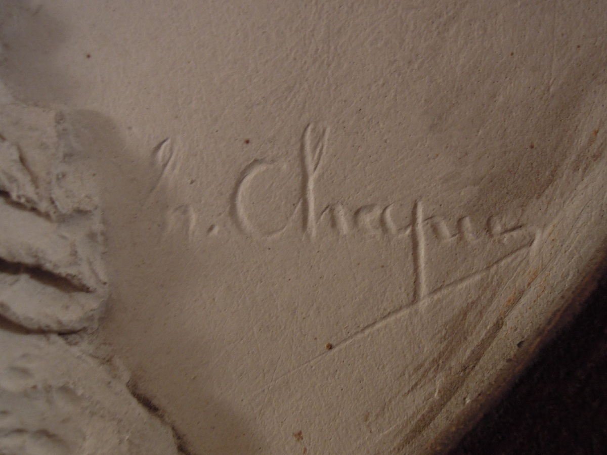 Henri Michel Antoine CHAPU (1833-1891). Profil de jeune homme en médaillon. Platre signé.