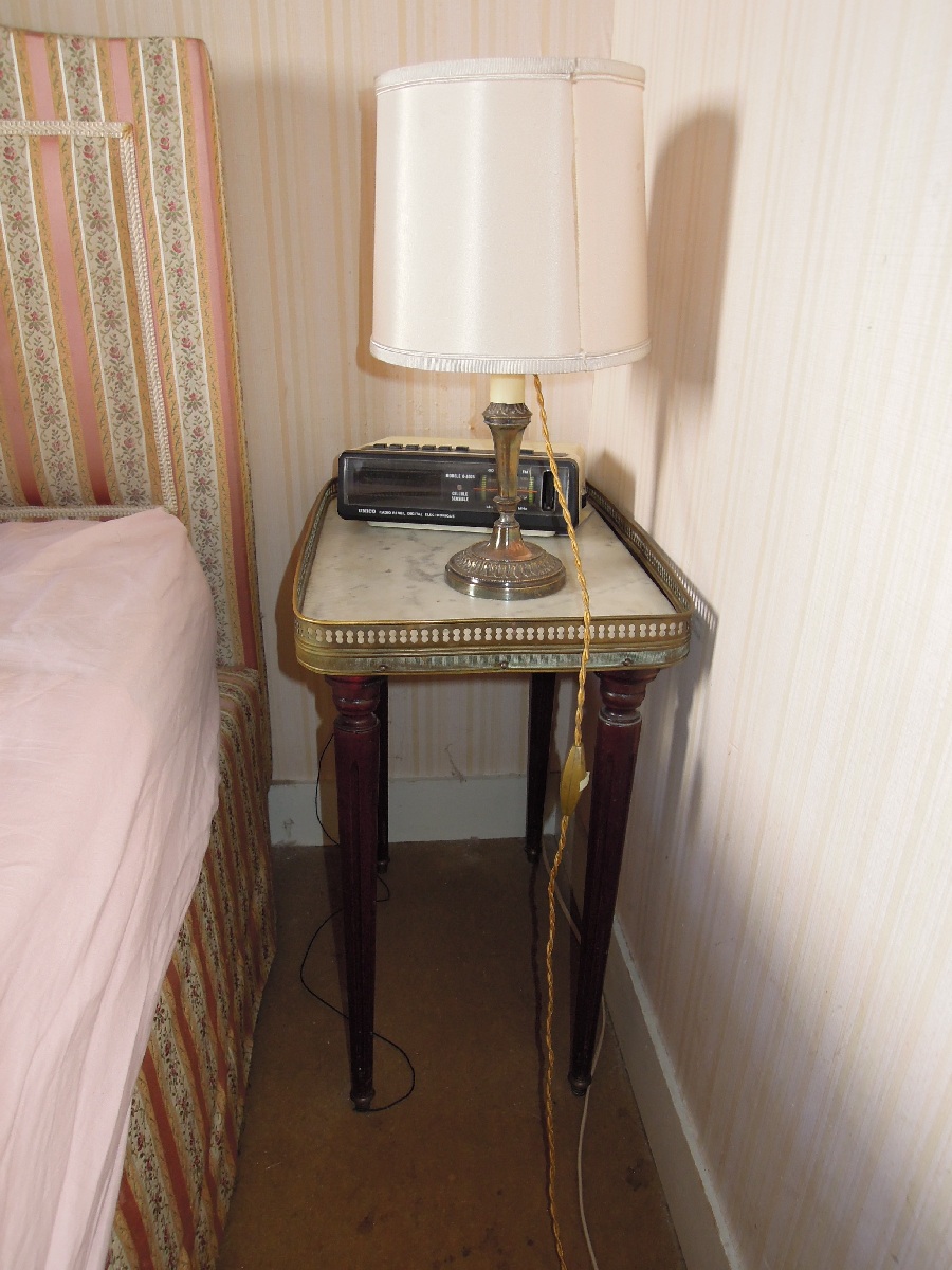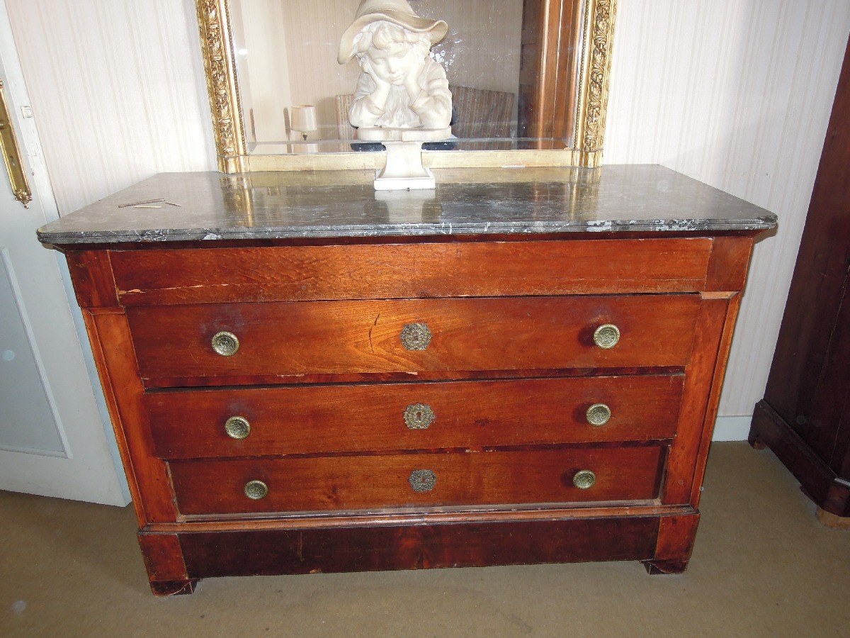 CHAMBRE A COUCHER comprenant : COMMODE style Louis Philippe ouvrant à trois tiroirs, dessus marbre, Petite TABLE GETLEG