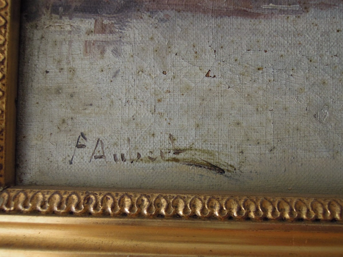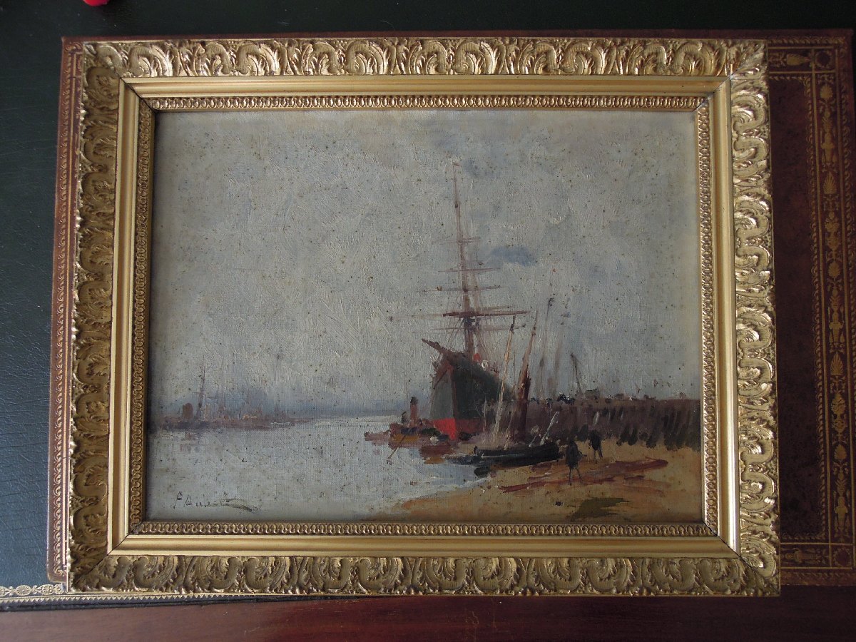 F. AUBERT. Vue d'un port. Toile signée en bas à gauche. 24 x 32 cm.