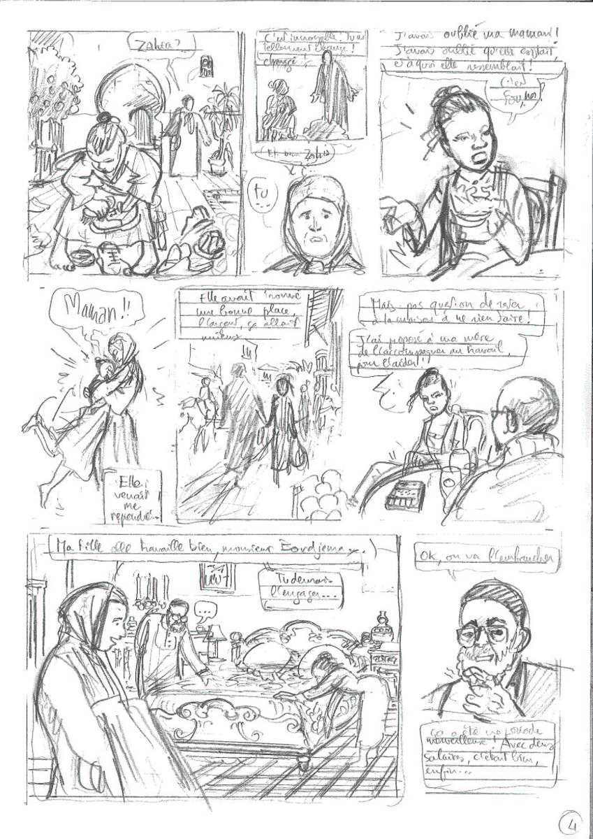 4 planches dont 1 crayonné, une première version et le définitif de la même page.