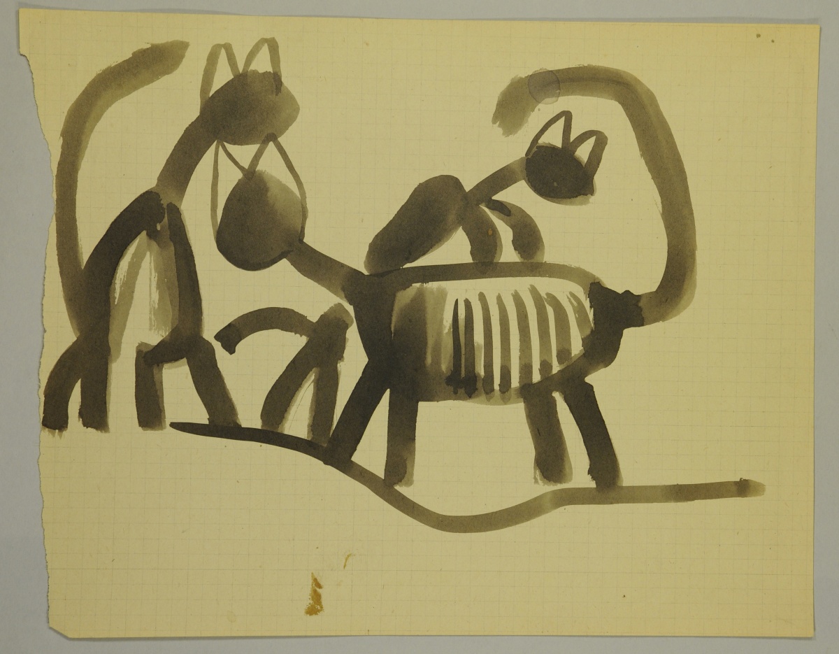 Quatre oeuvres sur papier comprenant trois silhouettes aquarellées et une aquarelle travaillée au couteau.