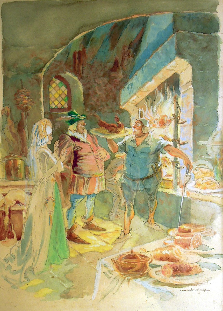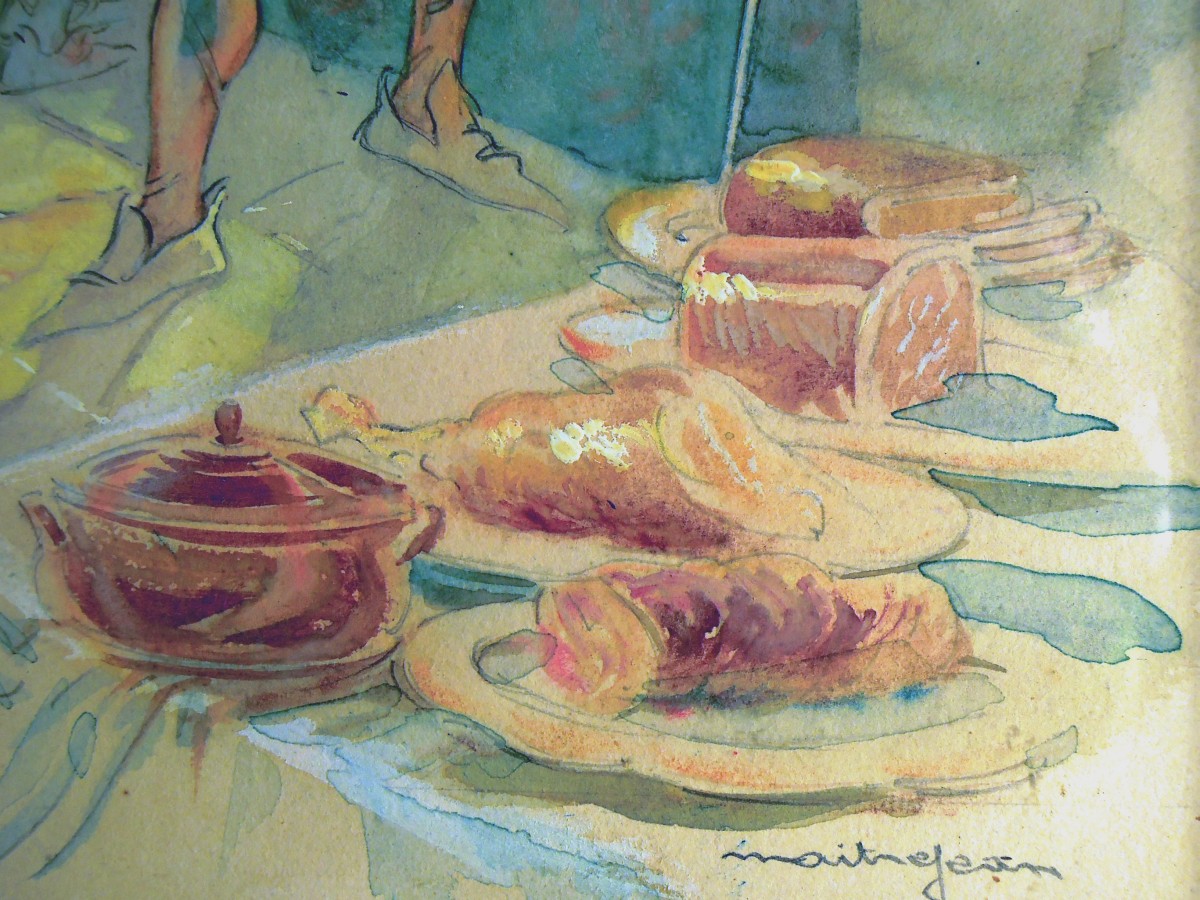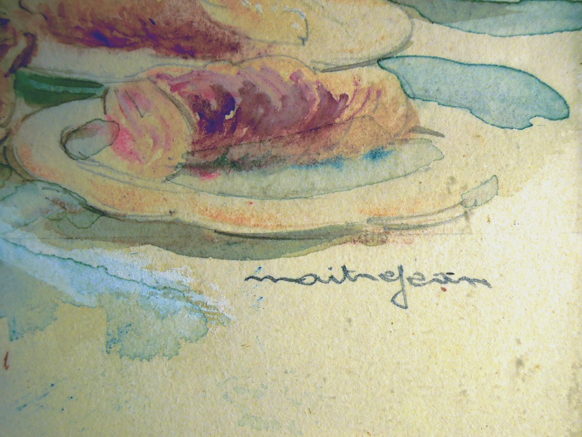 MAITREJEAN.Le rôtisseur.Aquarelle signée en bas à droite. 40 x 31...