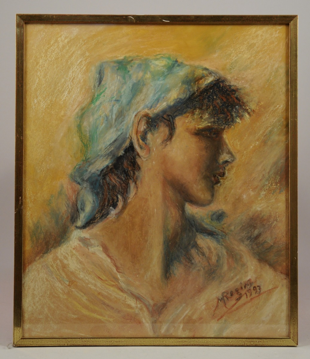 M. REGIN (XXème).Jeune homme au foulard bleu.Pastel sur papier signé...