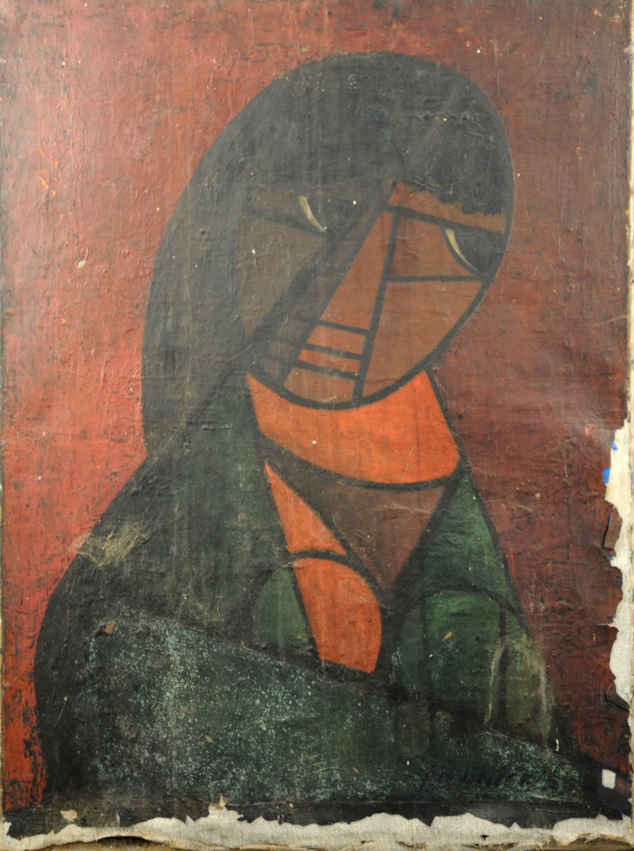 Toile signée en bas à droite et datée 56, titrée au dos.