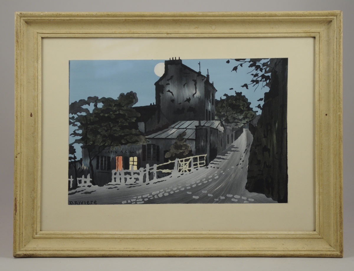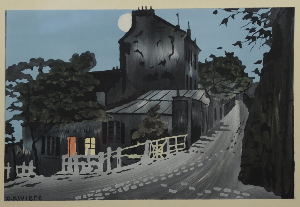 D. RIVIÈRE (XXème).Vue nocturne du Lapin Agile et de la...