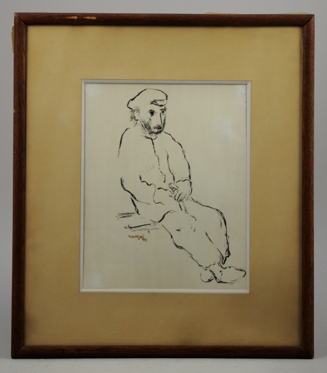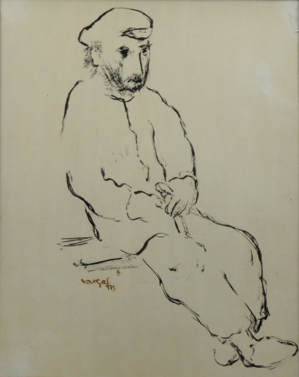 VARGAS (XXème).Vieil homme assis.Encre noire sur papier. Signé et daté...