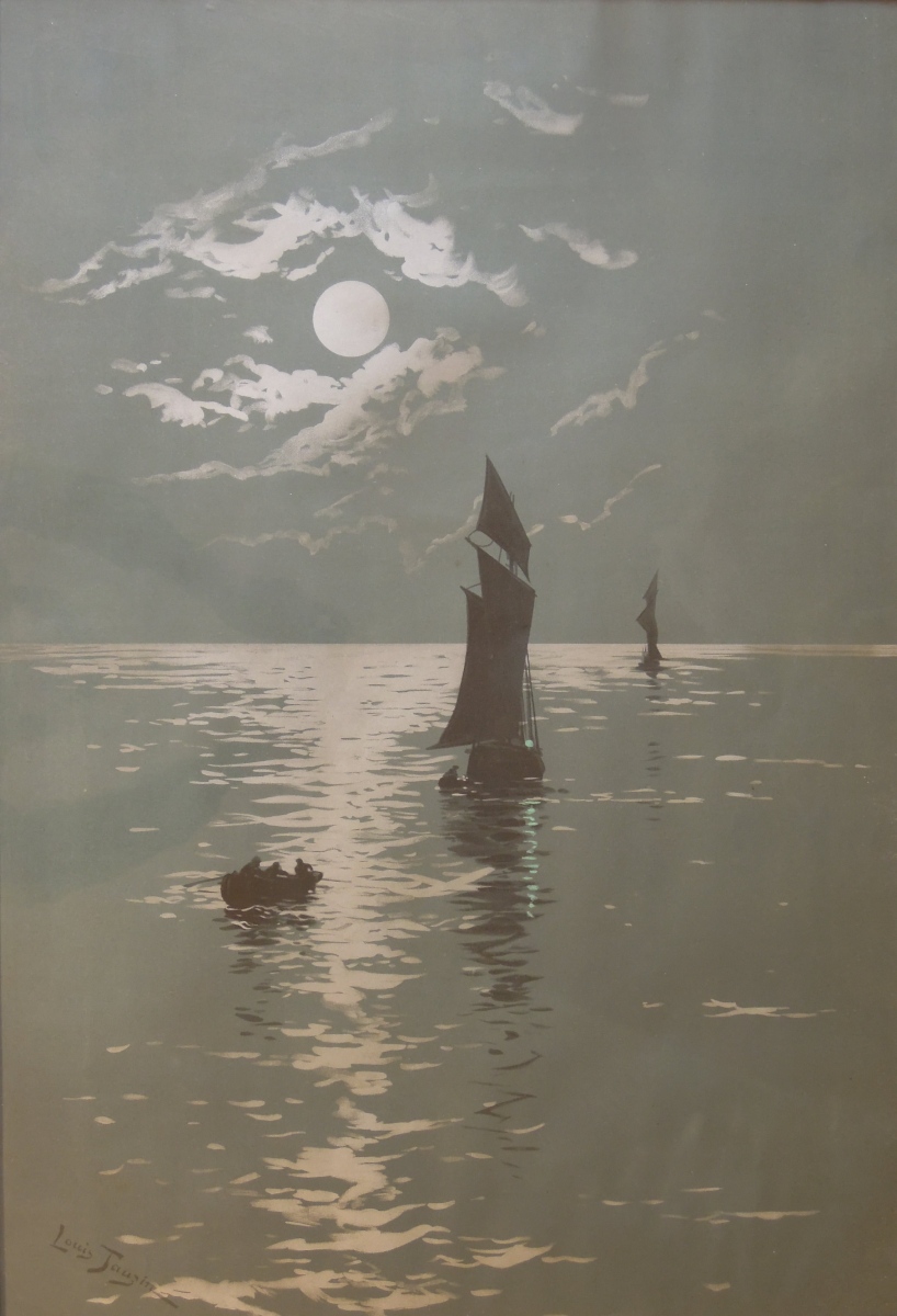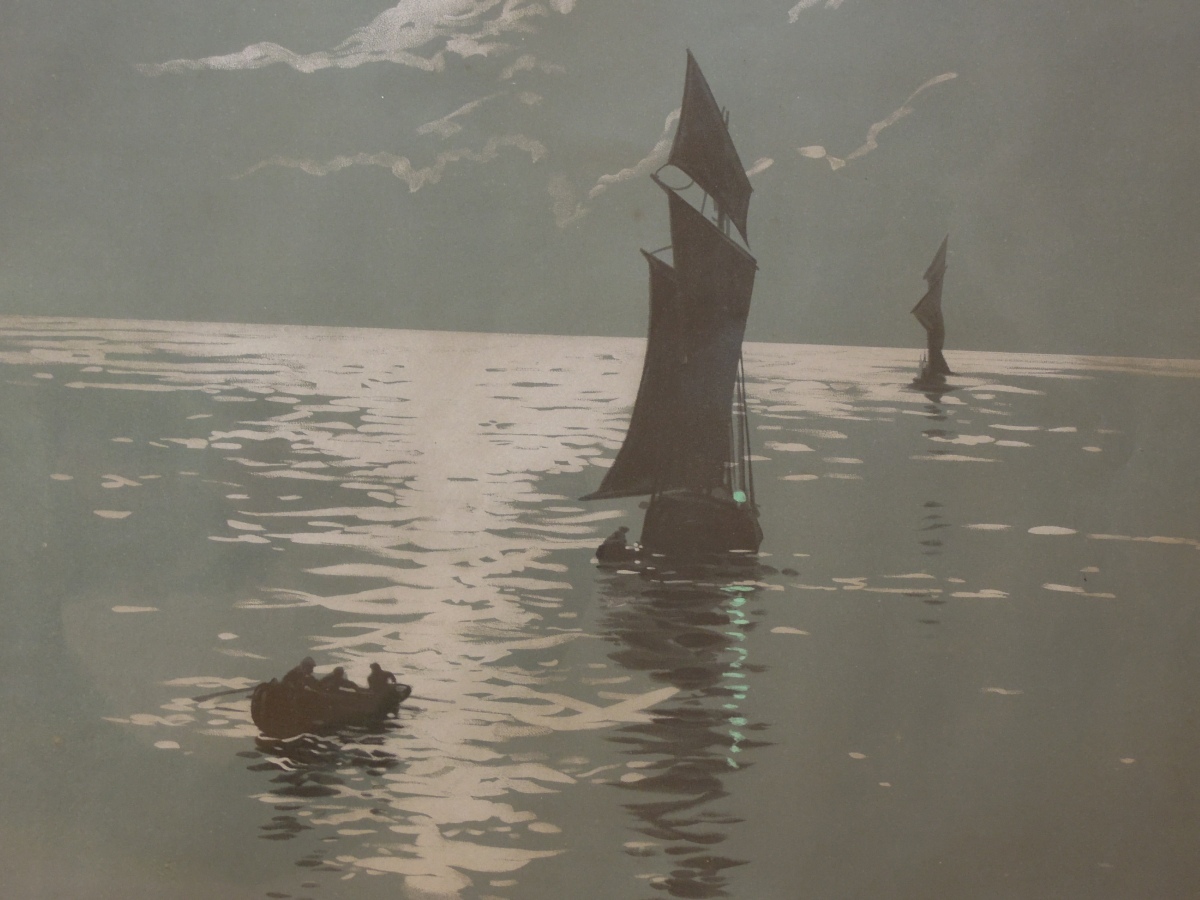 Départ de pèche : voiles et barque au clair de lune.