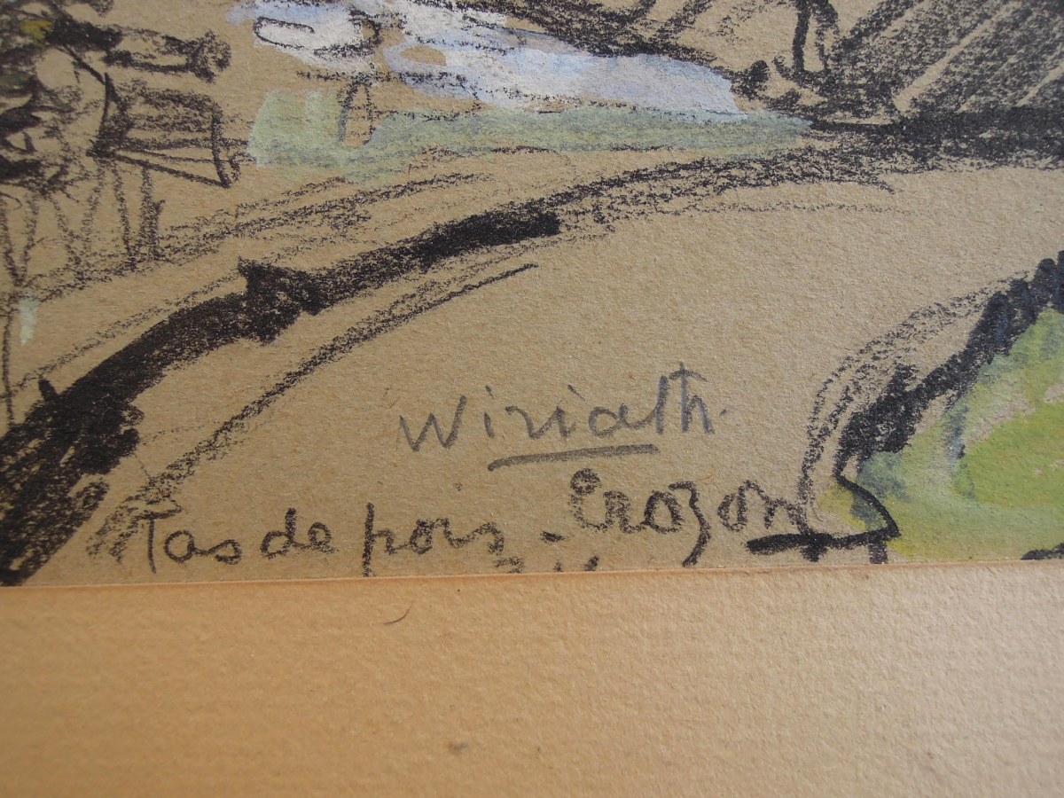 Renée WIRIATH (XXème)"Tas de Poix-Crozon".Crayon, gouache et rehaut de blanc....