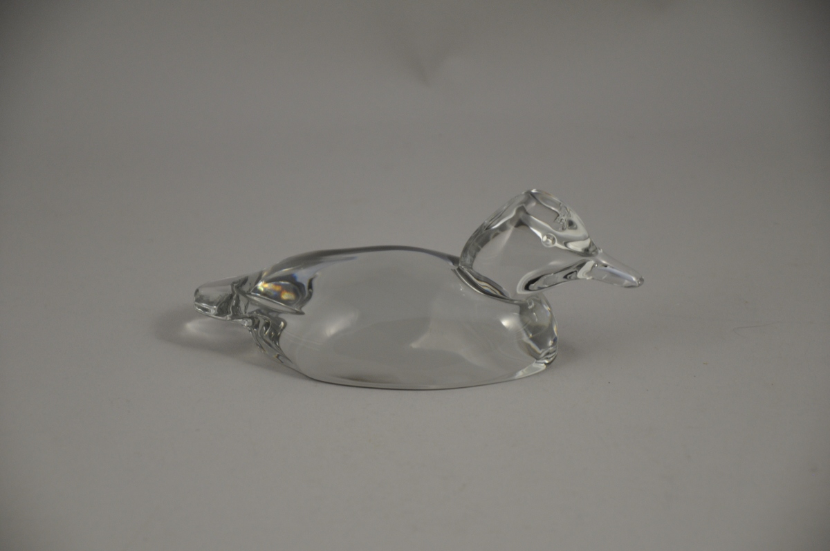 PRESSE-PAPIER en cristal en forme de canard. Marqué "Villeroy & Bosch". XXème. Long. 23, Larg. 10,5, Haut. 9,3 cm.