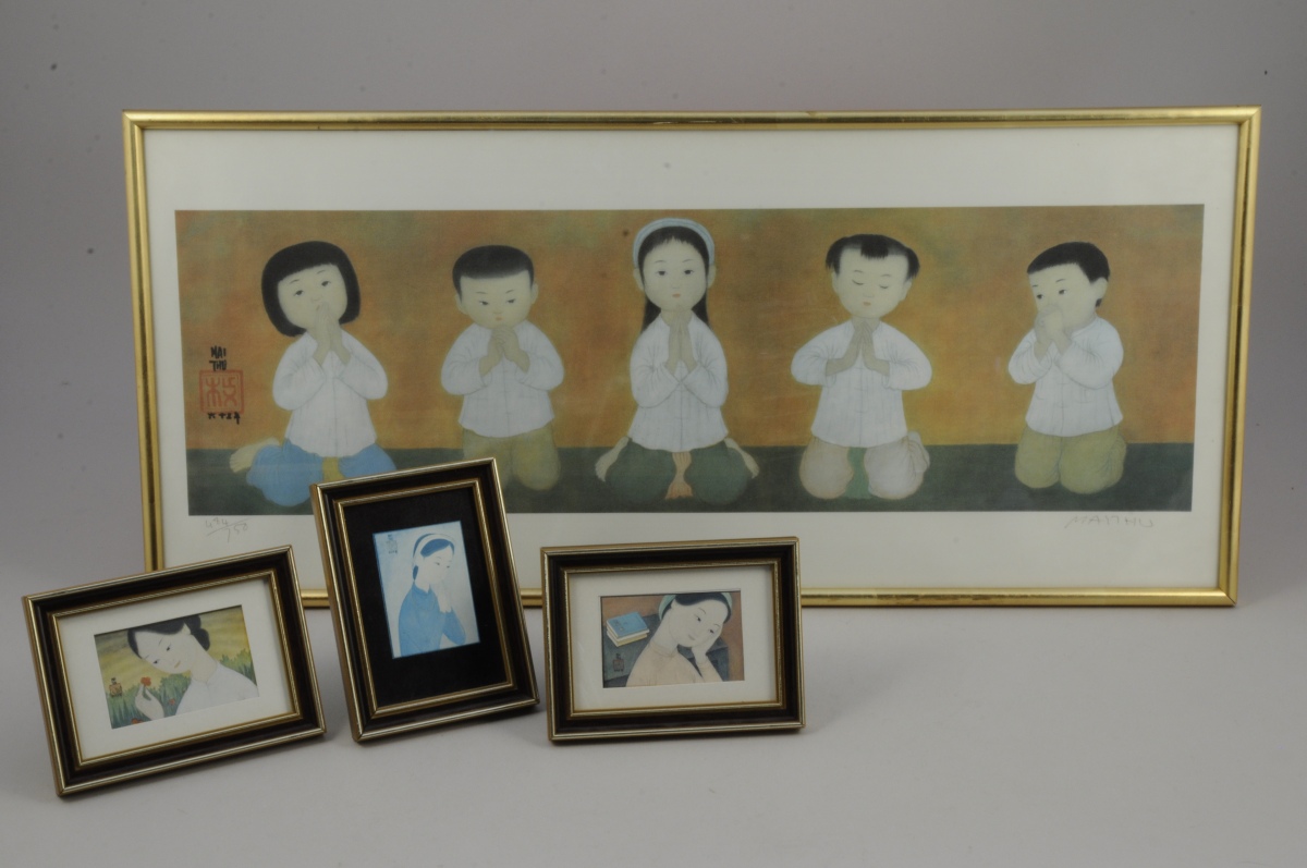 LOT de CINQ IMPRESSIONS SUR SOIE et REPRODUCTIONS de MAI THU (Hanoi, 1906 - 1980) :
