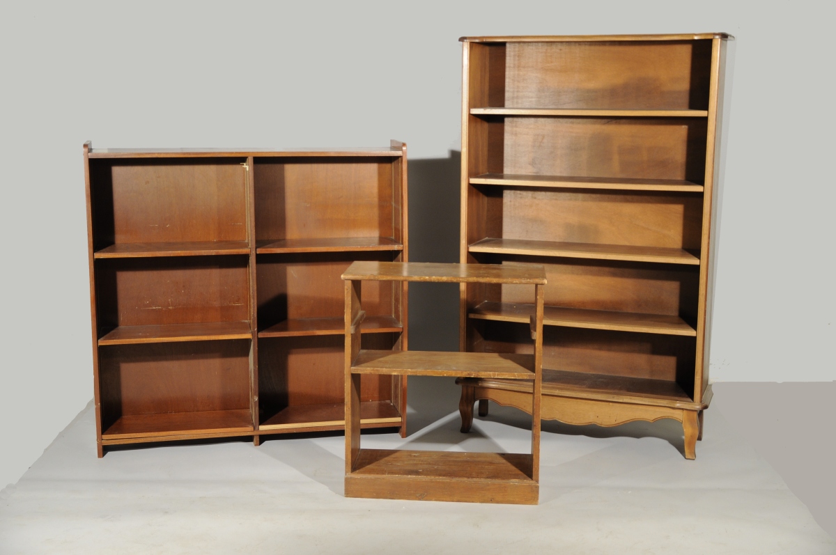 - Une étagère double en bois stratifié teinté. Epoque contemporaine. Haut. 117,4, Larg. 118, Prof. 25,2 cm.