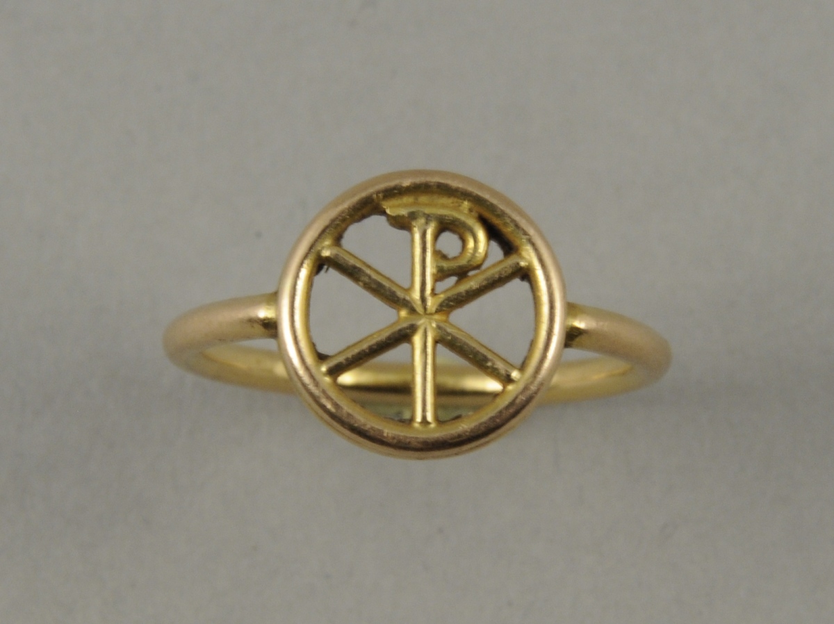 BAGUE en or jaune présentant un Chrisme dans un cercle....