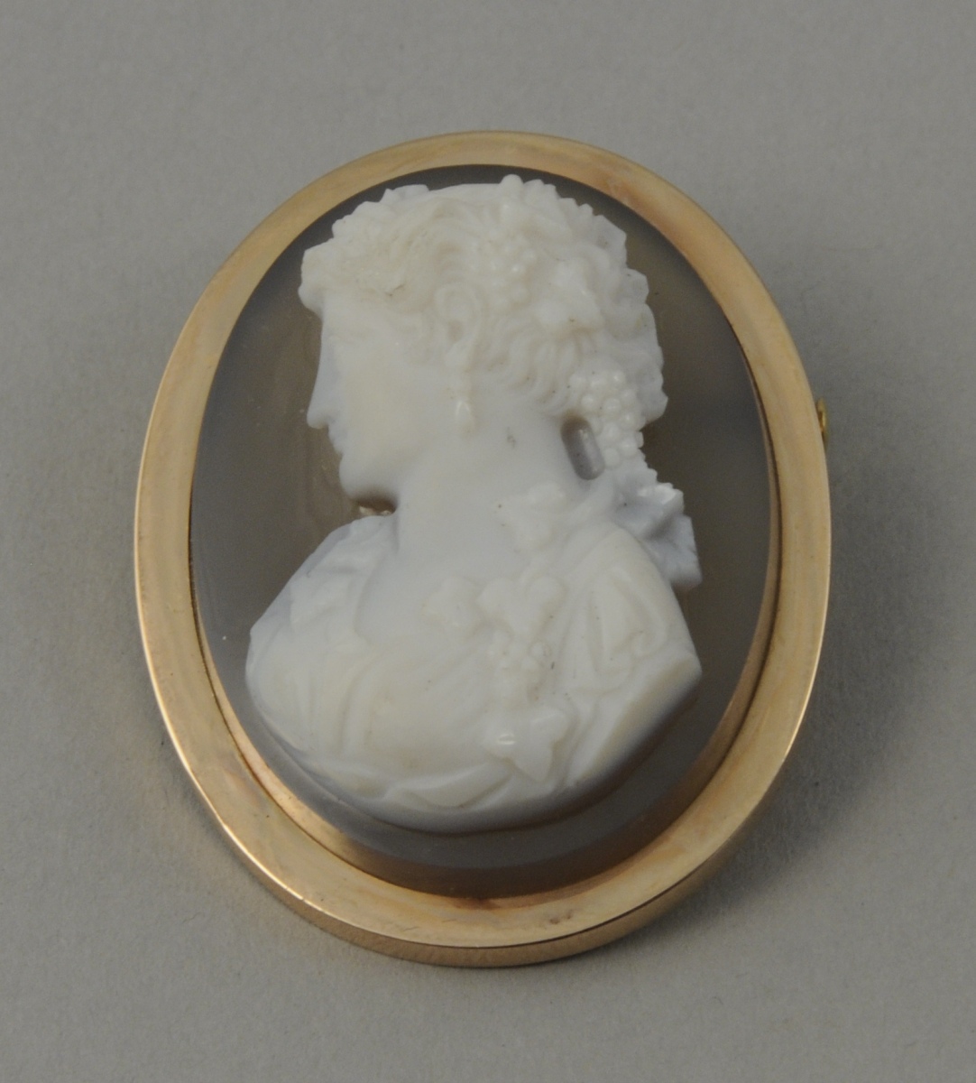 BROCHE ovale en or jaune ornée d'un camée agate représentant une femme en buste. Dimensions : 40 X 30 mm. Poids brut : 21 g.