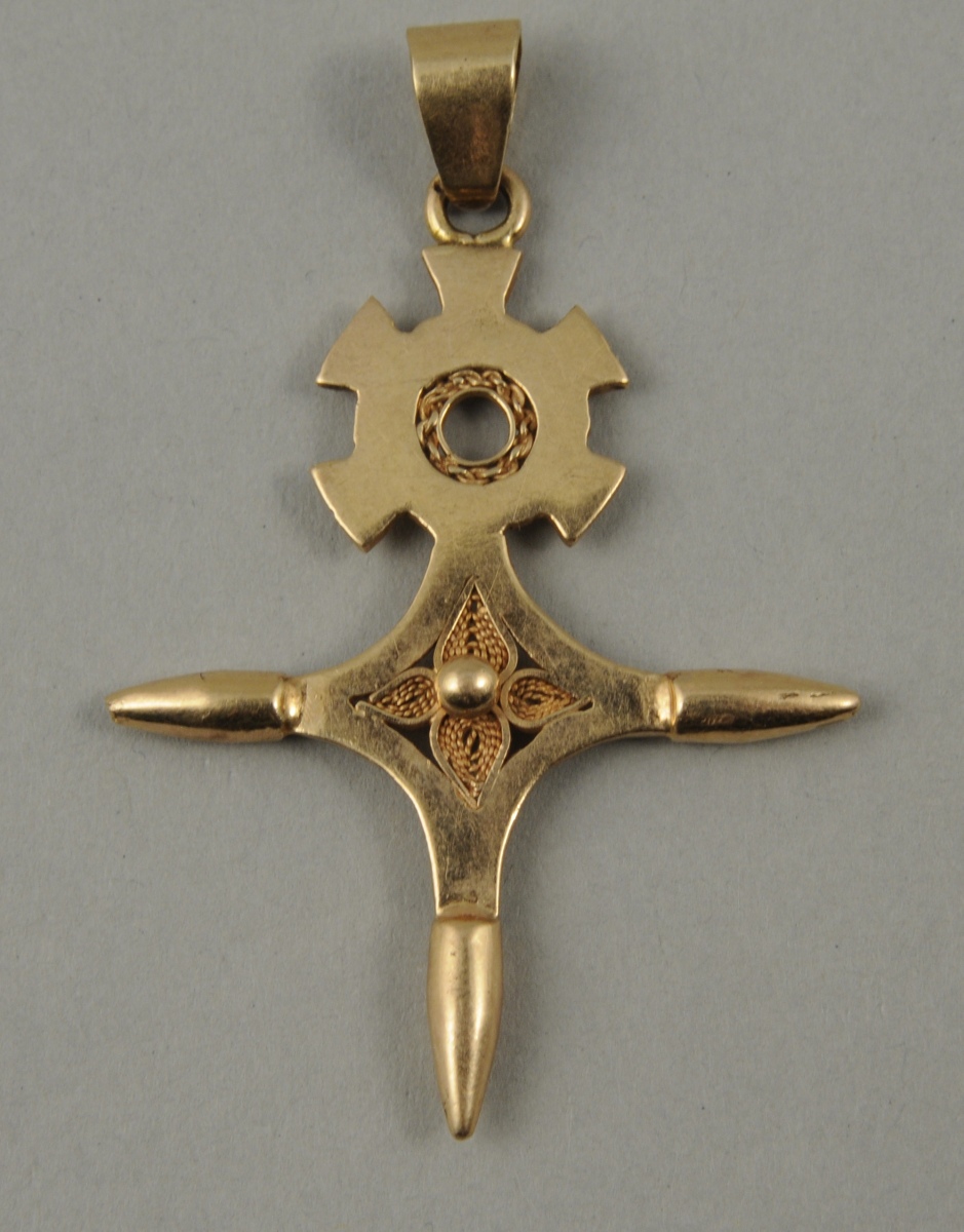 PENDENTIF figurant une croix berbère en or. Haut. 5,4 cm. Poids : 7,2 g.
