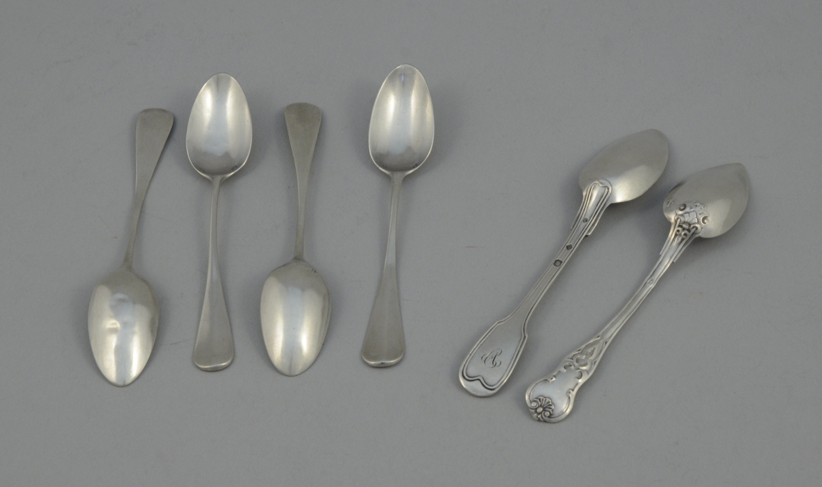 -Quatre CUILLÈRES. Modèle uniplat. Poinçon Minerve. Début du XXème. Long. 14 cm. Poids : 75 g.