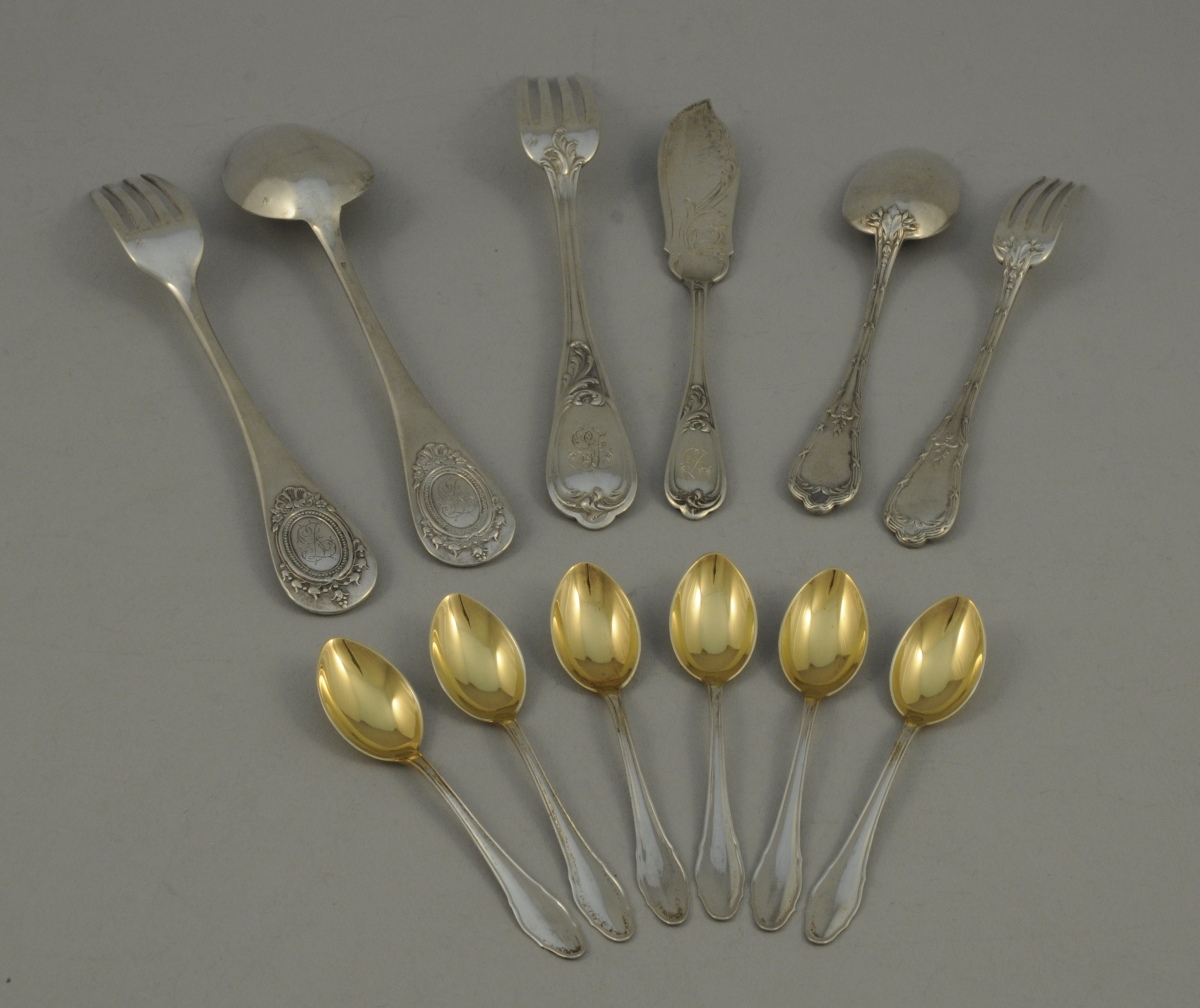 -Un COUVERT de table, modèle uniplat, monogrammé "GZ" dans un médaillon à rang de perles, coquilles et fleurs. Poinçon Minerve. Orfèvre : J. Granvigne.
