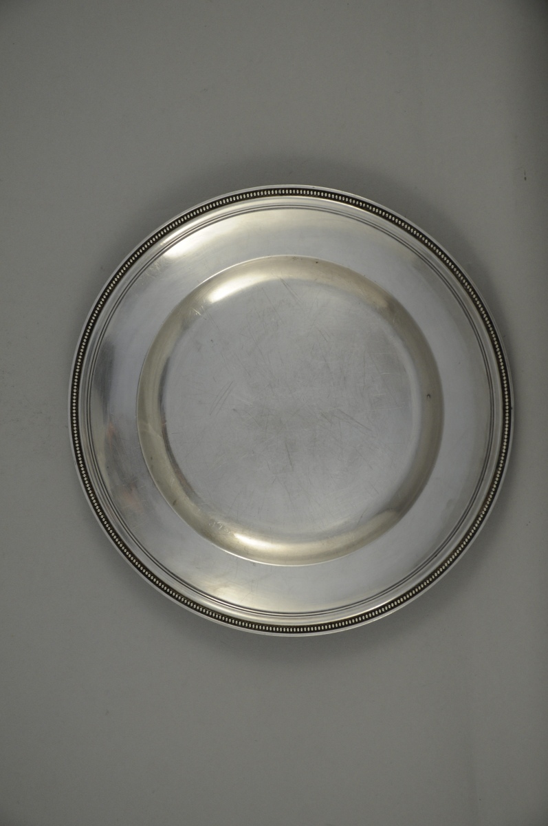 Ensemble de deux PLATS, en métal argenté. L'un rond et l'autre ovale, décor de filets et rais de perle. CHRISTOFLE. Diam. 30 cm. Long. 46 cm.