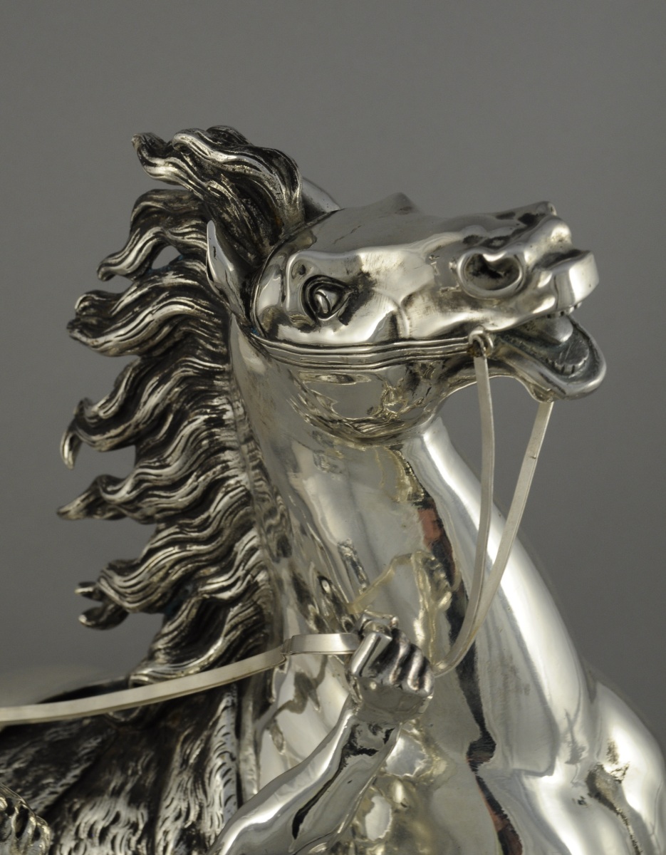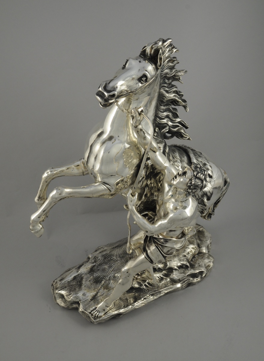 Les CHEVAUX DE MARLY d'après COUSTOU en bronze argenté. Deux sujets en pendant.