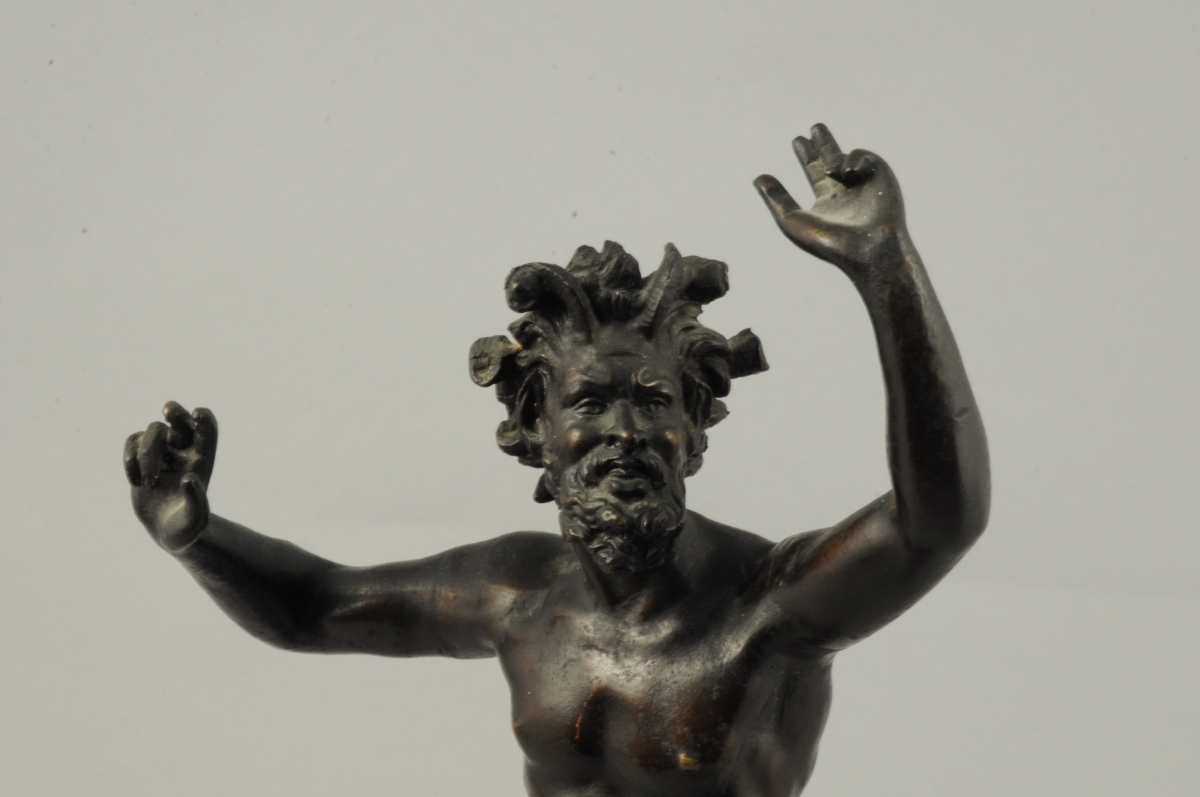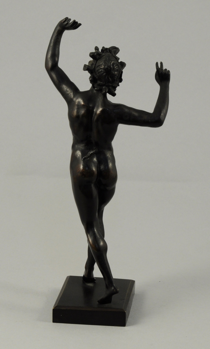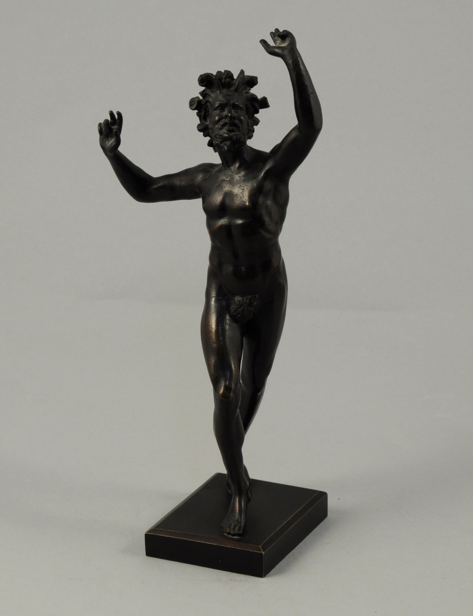 SATYRE dansant. Figure en bronze patiné d'après l'antique, sur socle quadrangulaire.